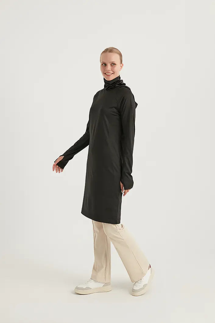 Tam boy kapüşonlu tasarımıyla öne çıkan Kapüşonlu Uzun Quick Dry Eşofman Üstü, tesettür giyim tercih eden kadınlar için özel olarak tasarlanmıştır.