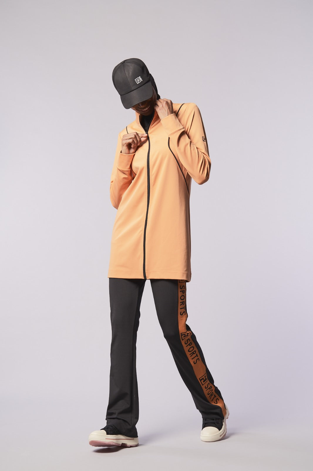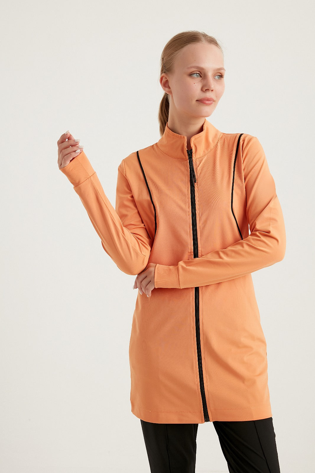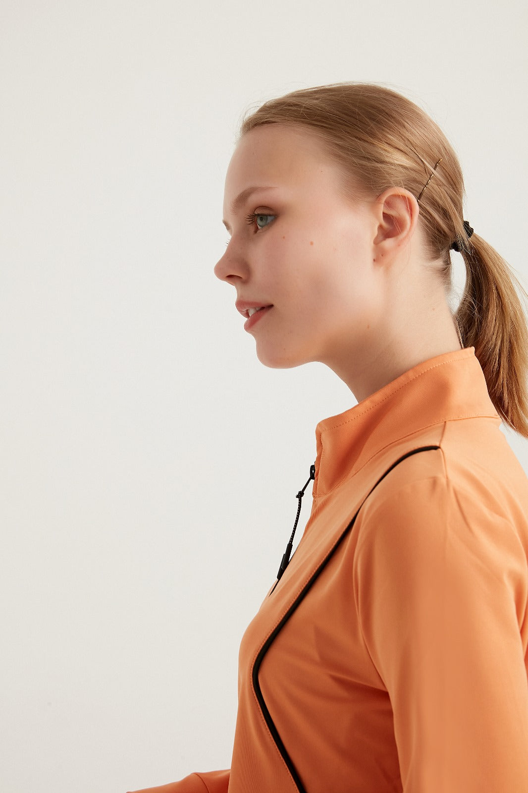 Önden Fermuarlı Dik Yaka Quick Dry Eşofman Üstü - Kiremit