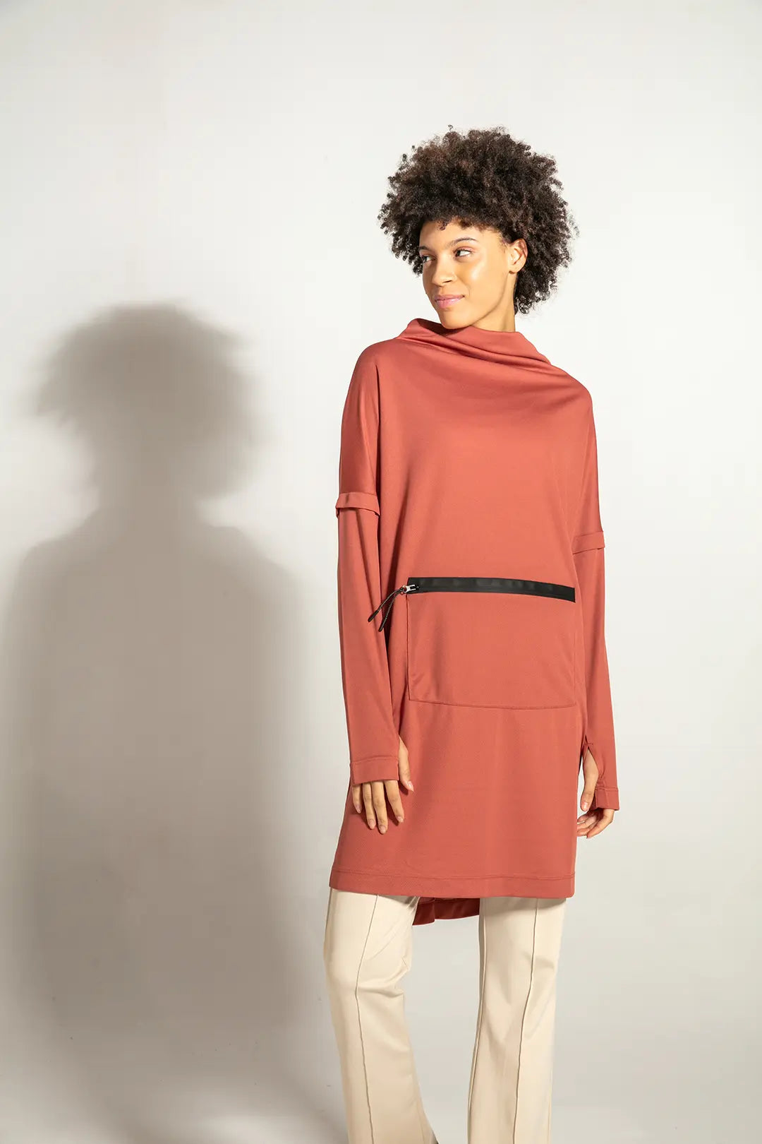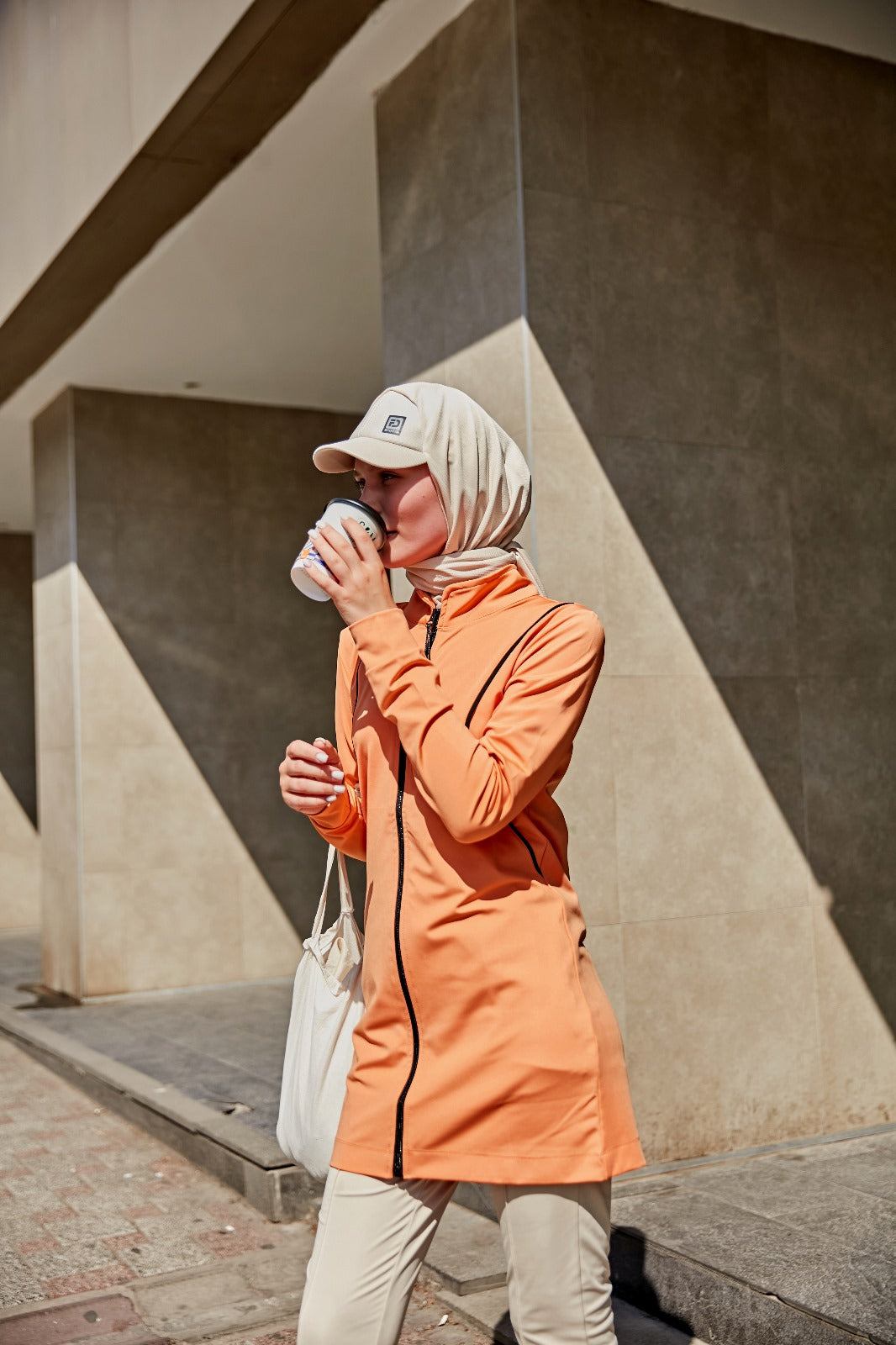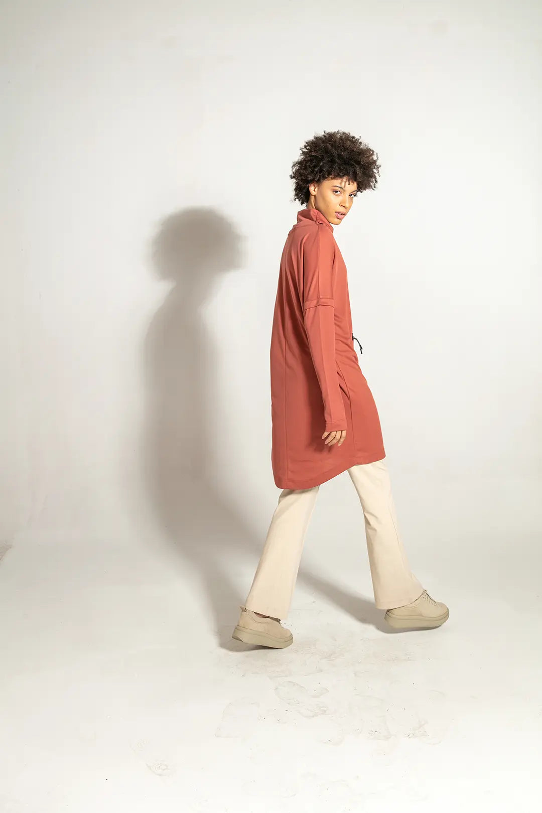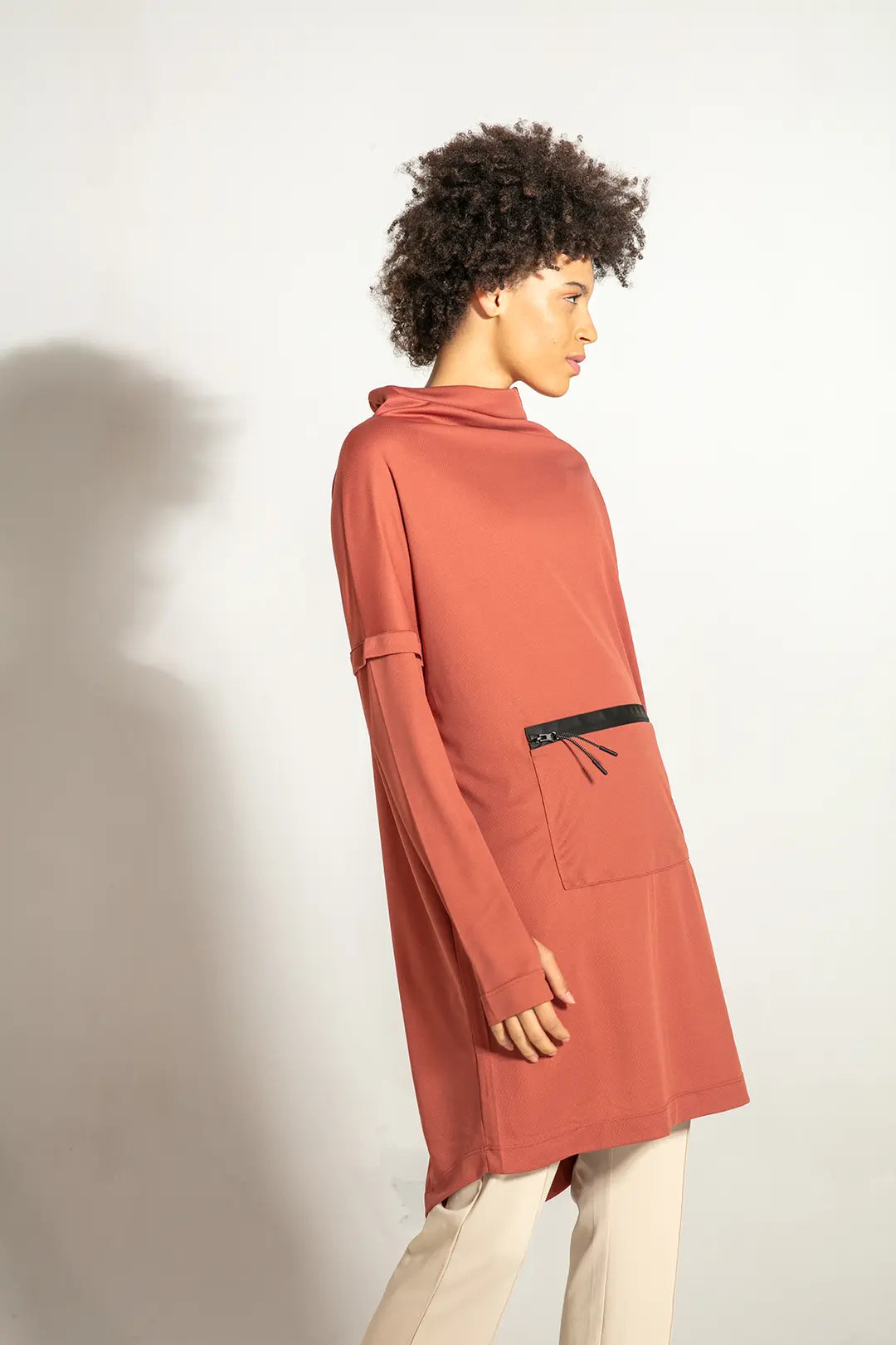 Önden Fermuarlı Dik Yaka Quick Dry Eşofman Üstü - Kiremit