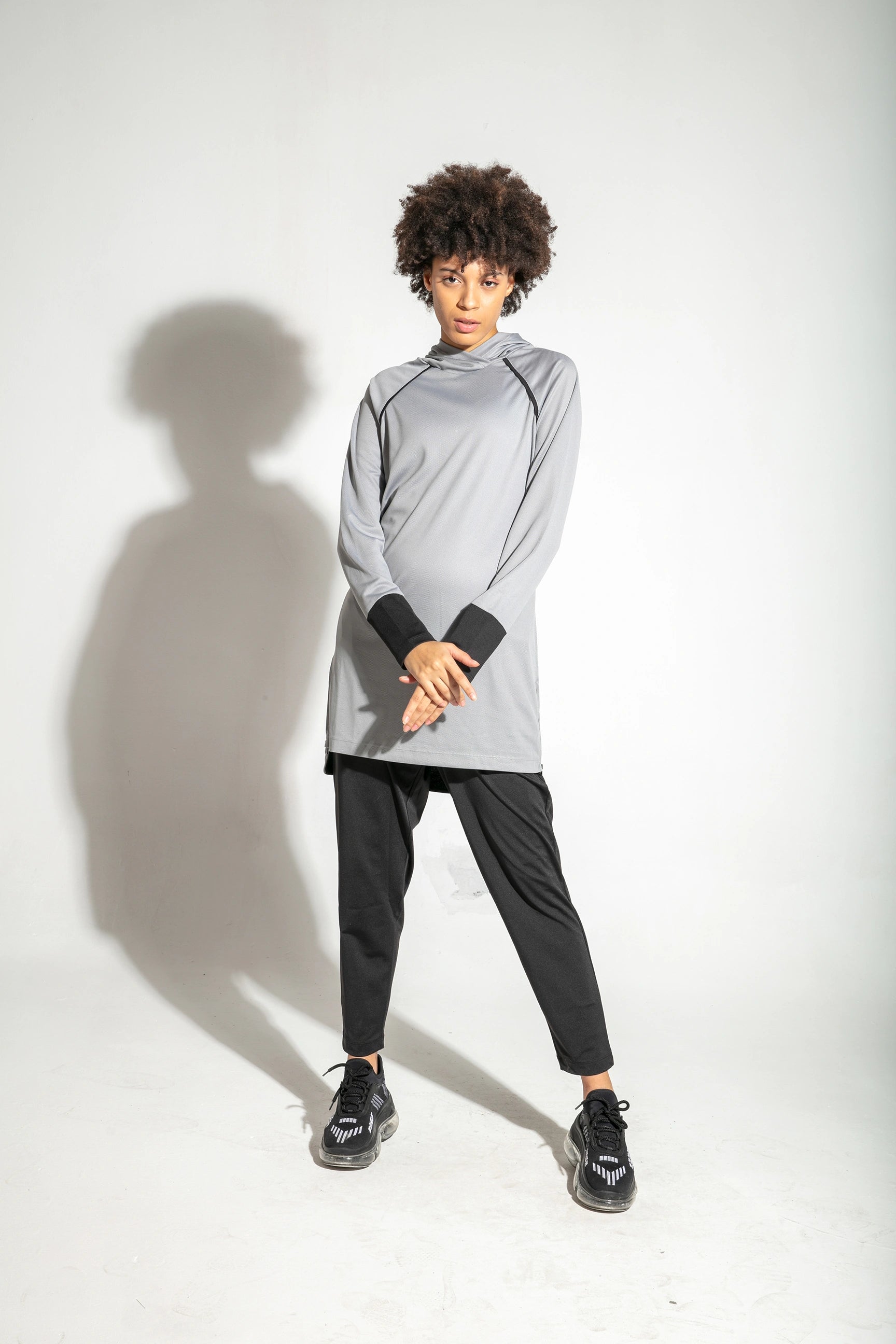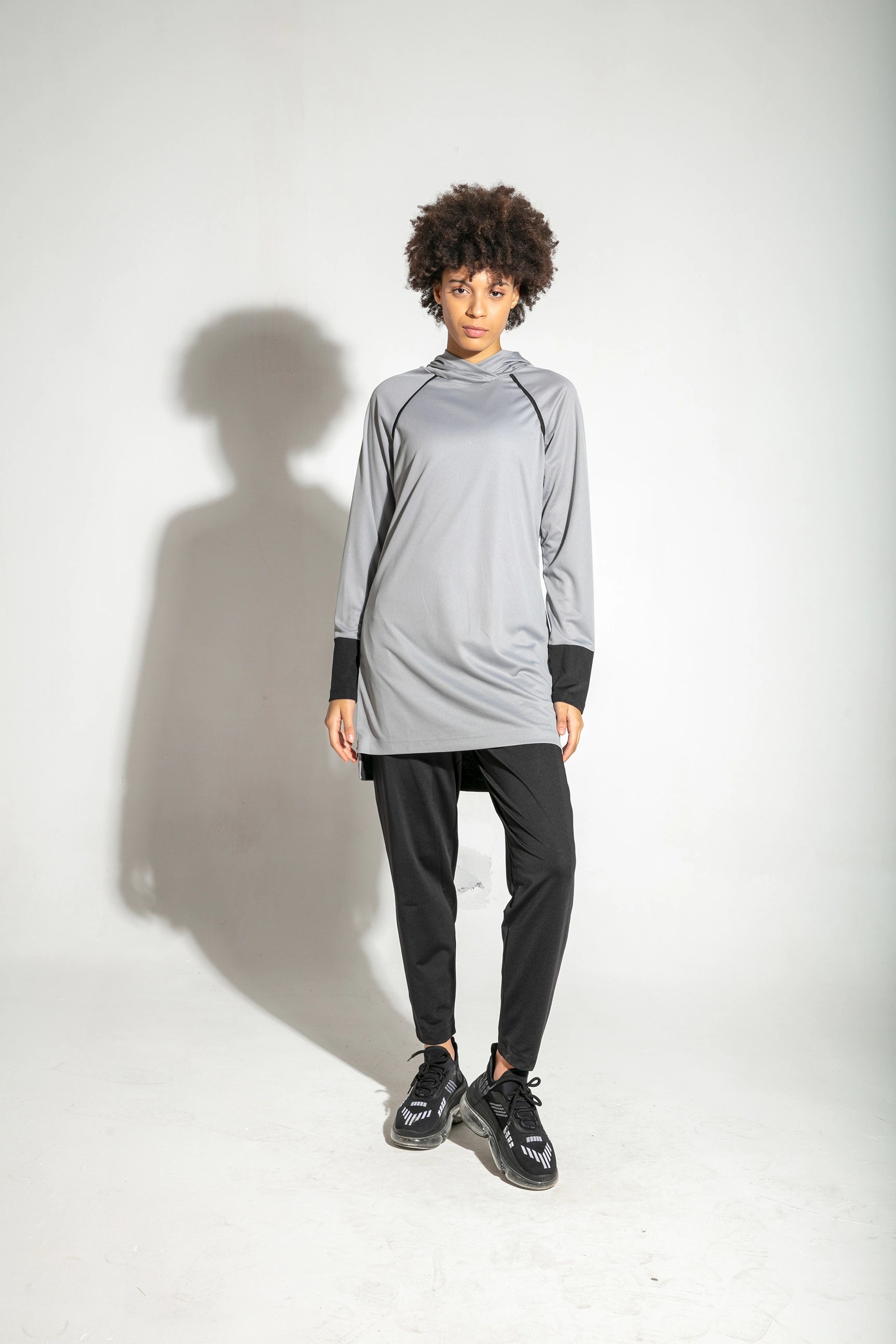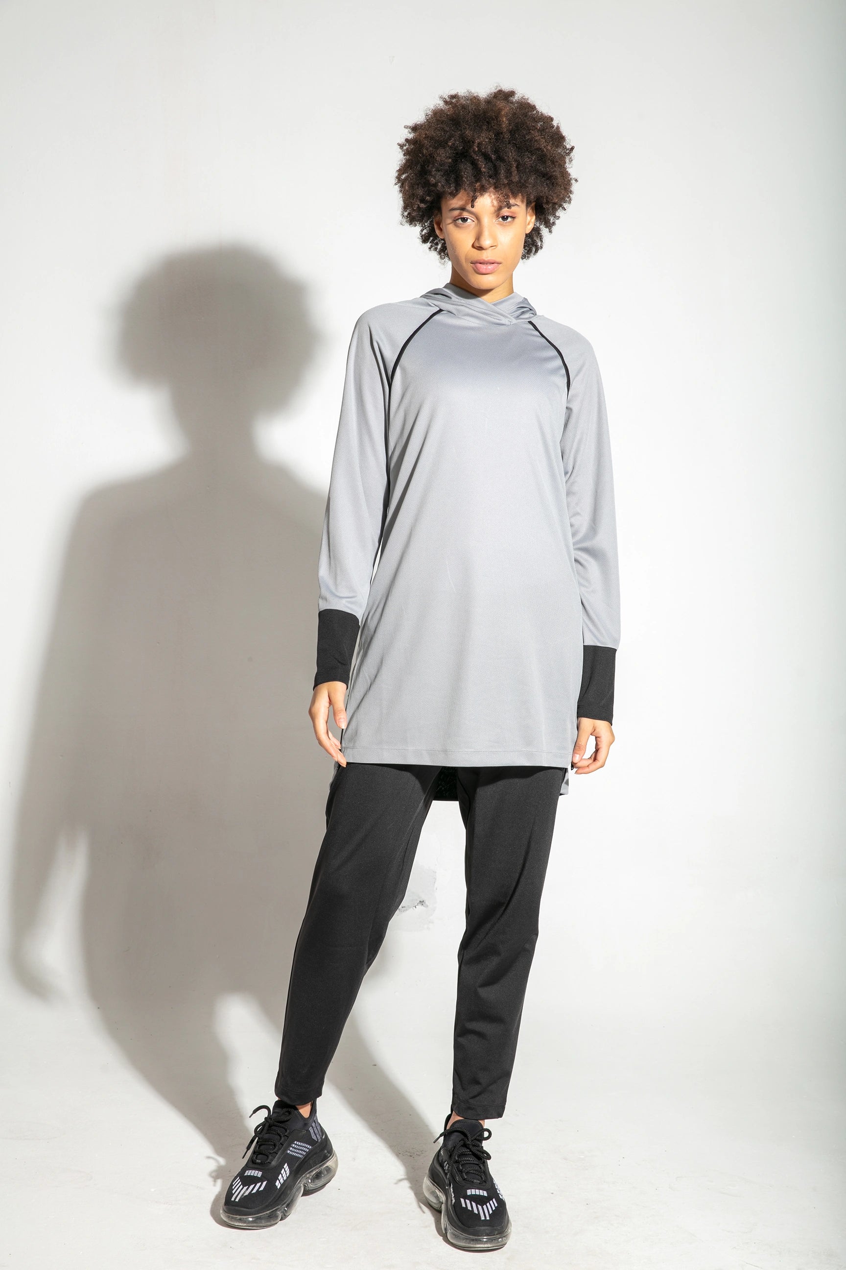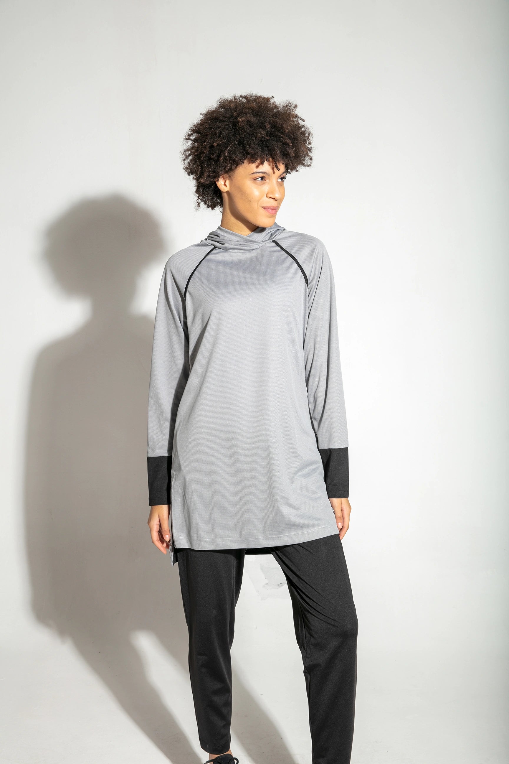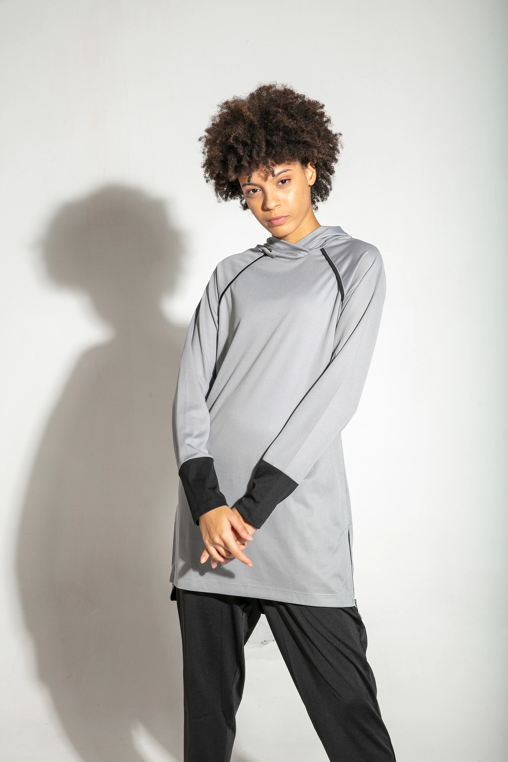 Yanları Fermuarlı Kapüşonlu Quick Dry Eşofman Üstü - Gri