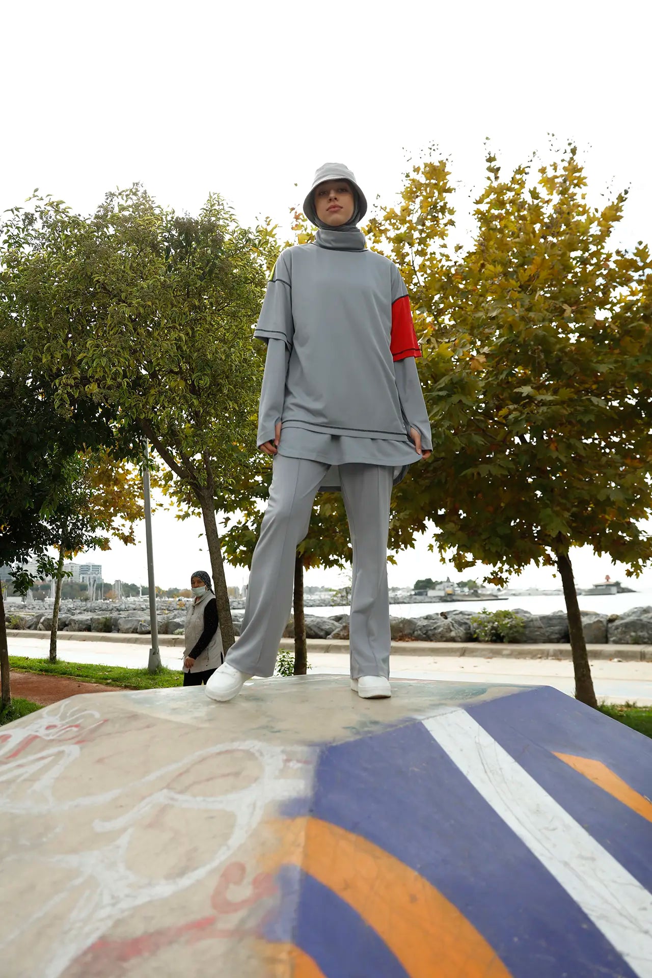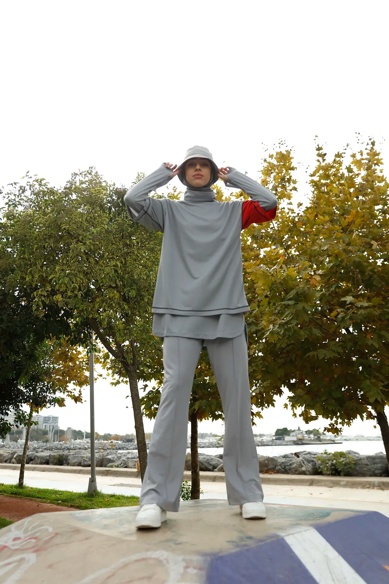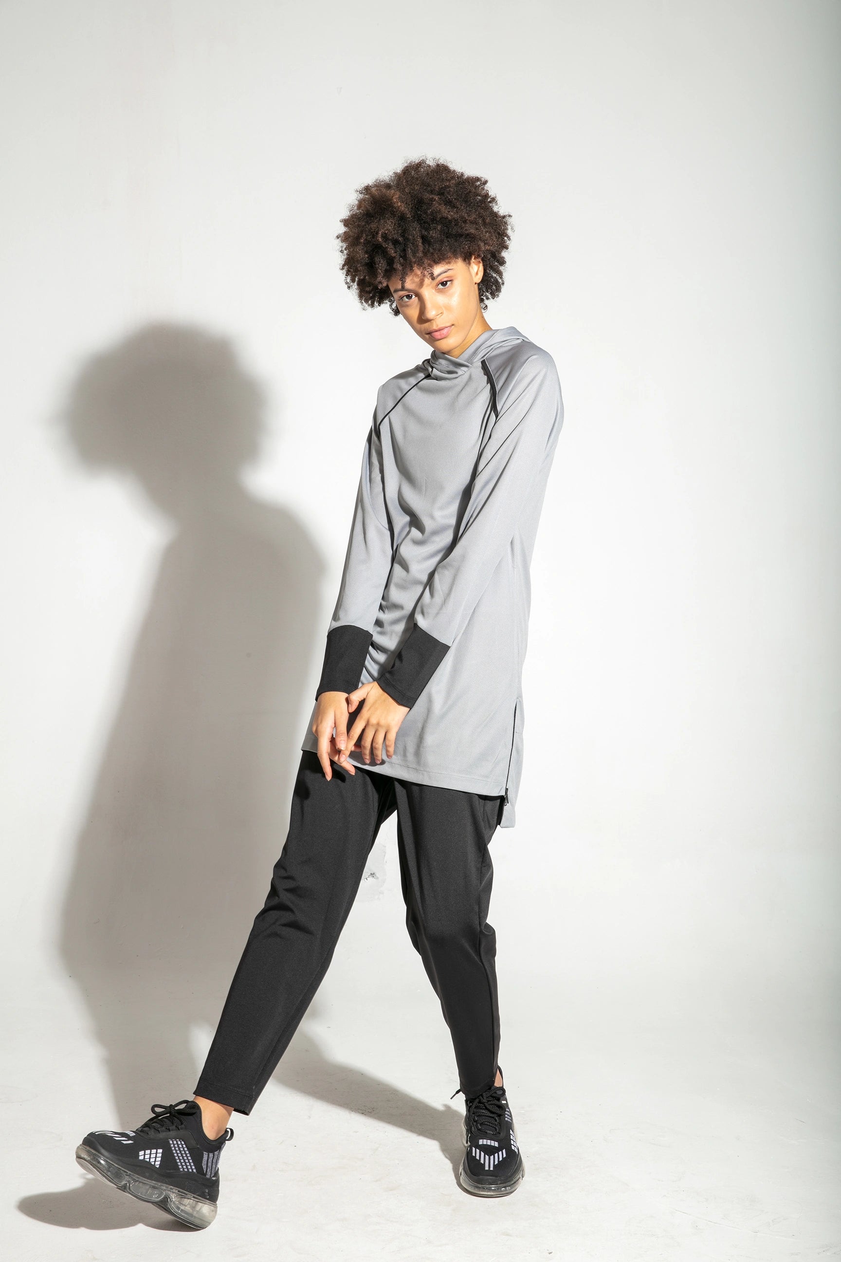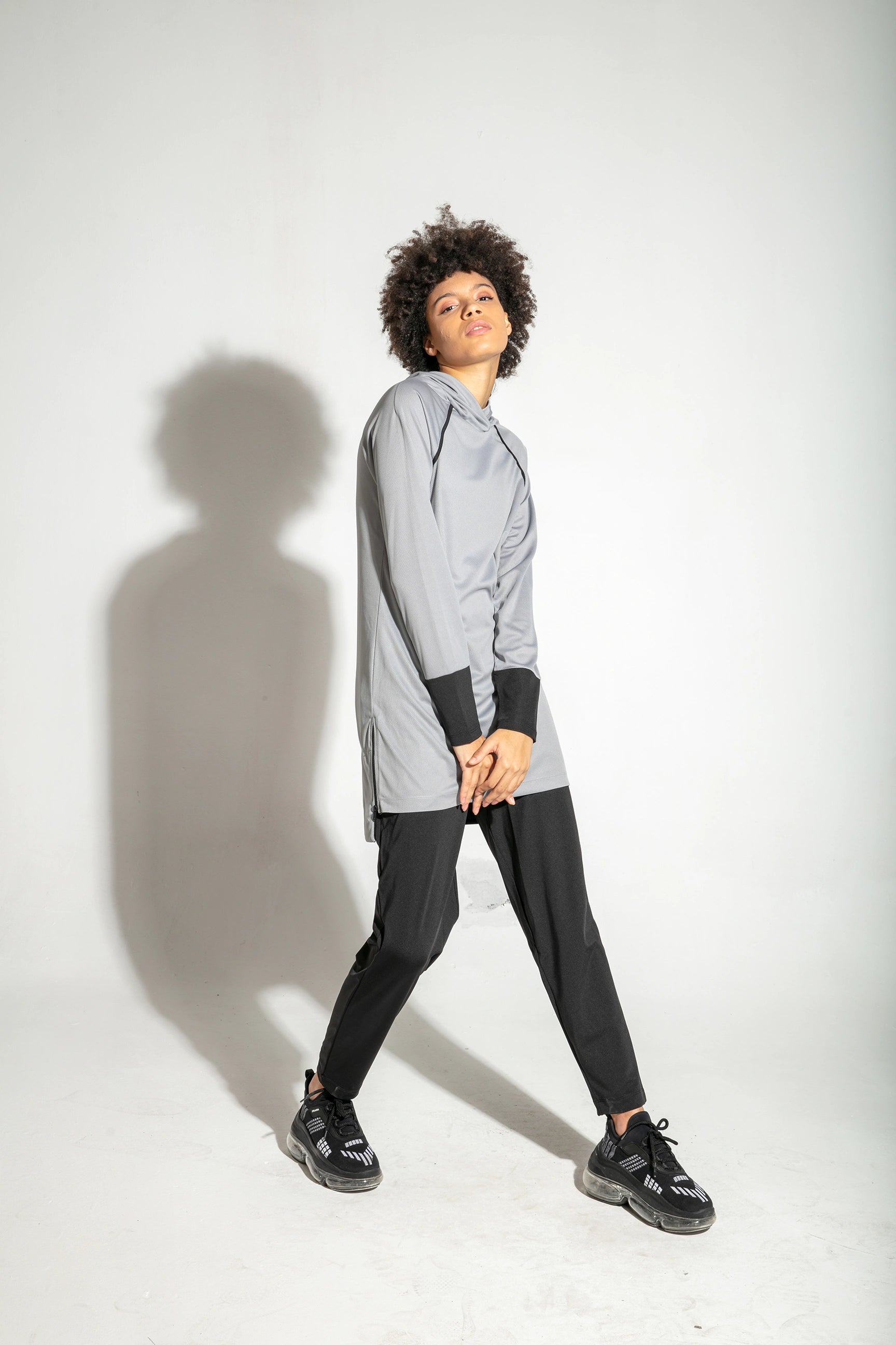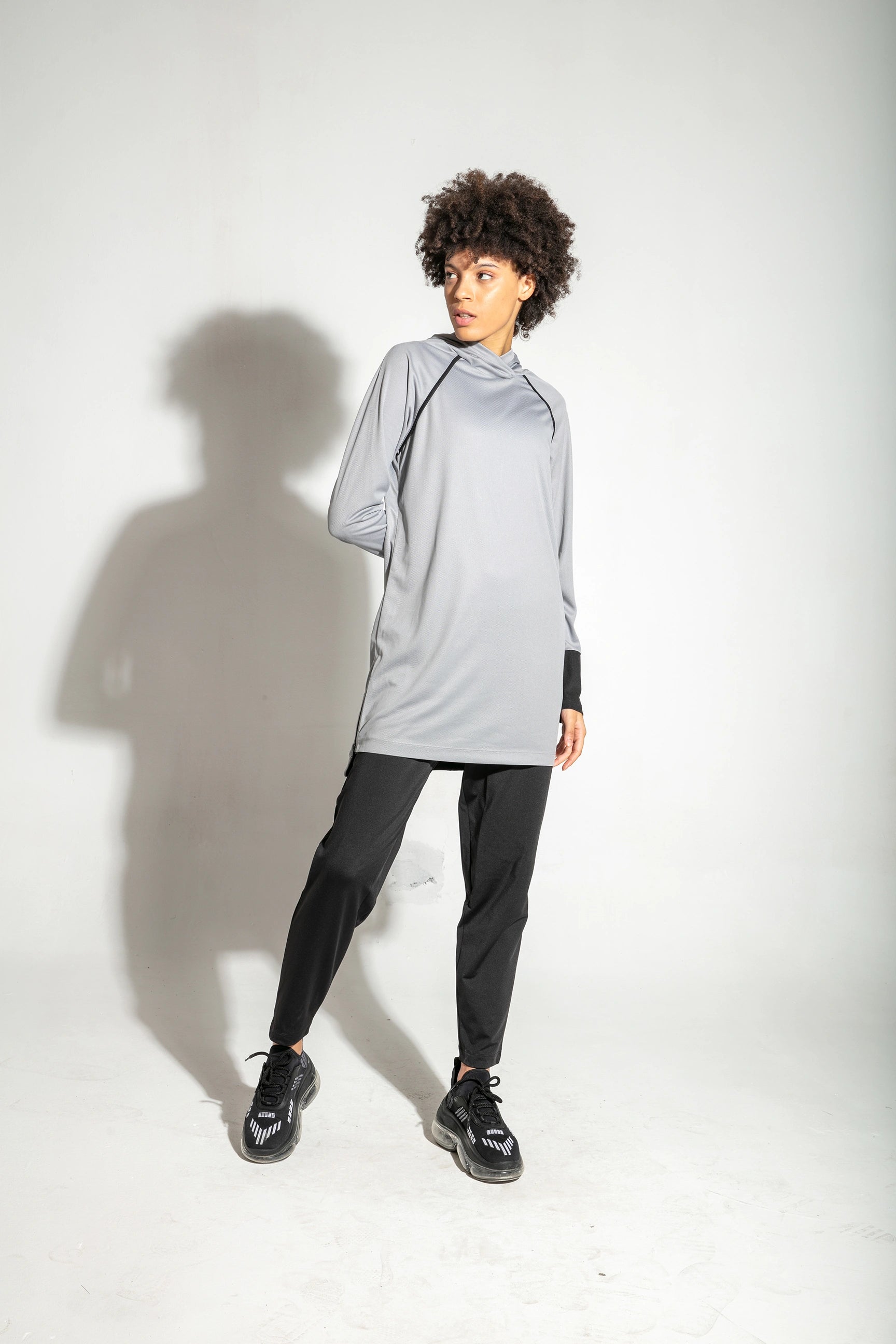 Yanları Fermuarlı Kapüşonlu Quick Dry Eşofman Üstü - Gri