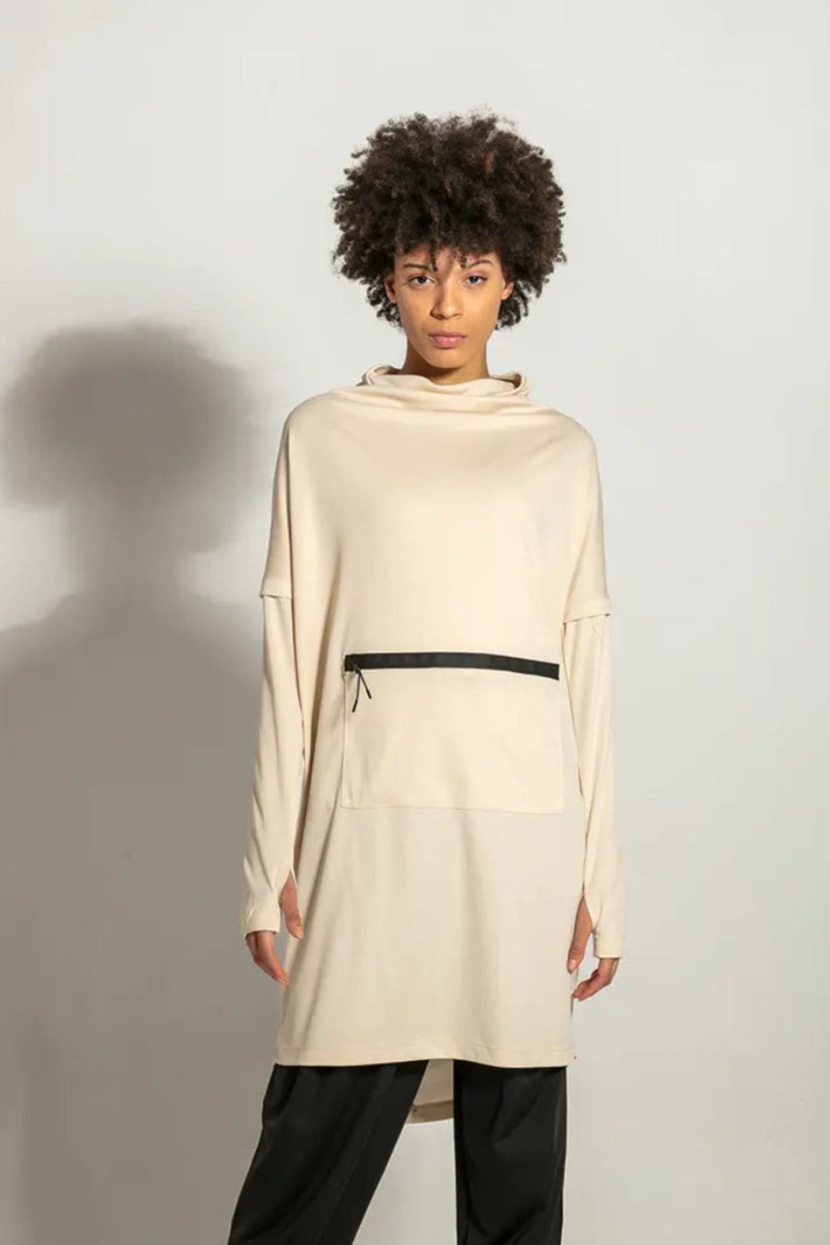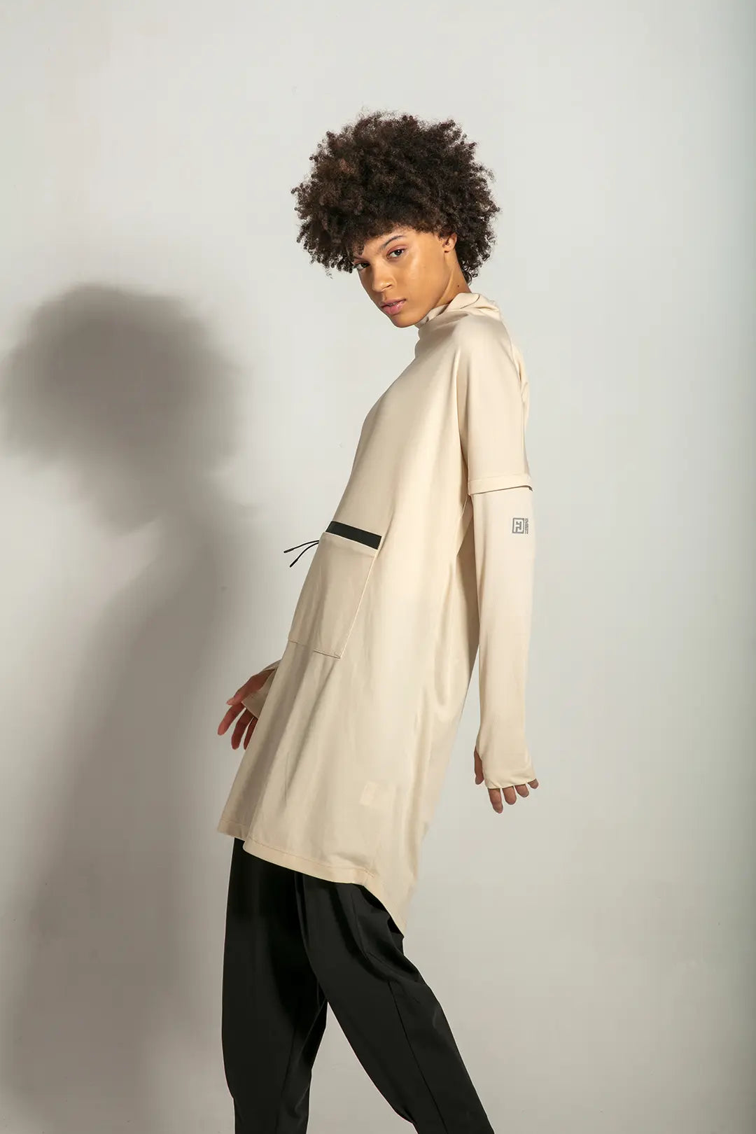 COOL-TECH Kanguru Cepli Quick Dry Eşofman Üstü - Bej