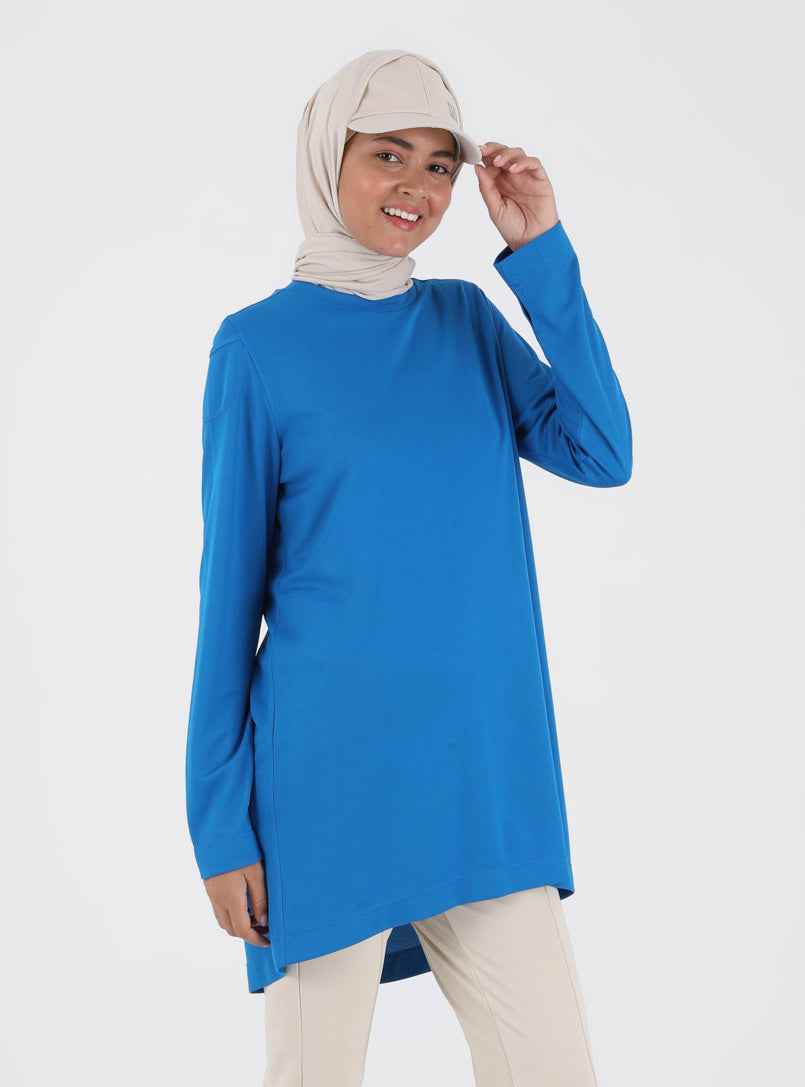TRAIN-FIT Bisiklet Yaka Quick Dry Eşofman Üstü - Mavi