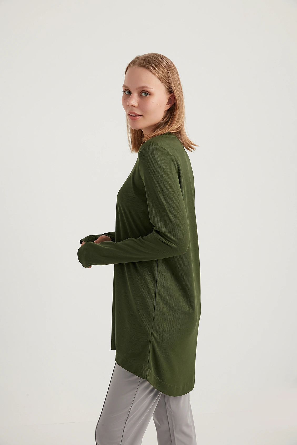 TRAIN-FIT Bisiklet Yaka Quick Dry Eşofman Üstü - Yeşil