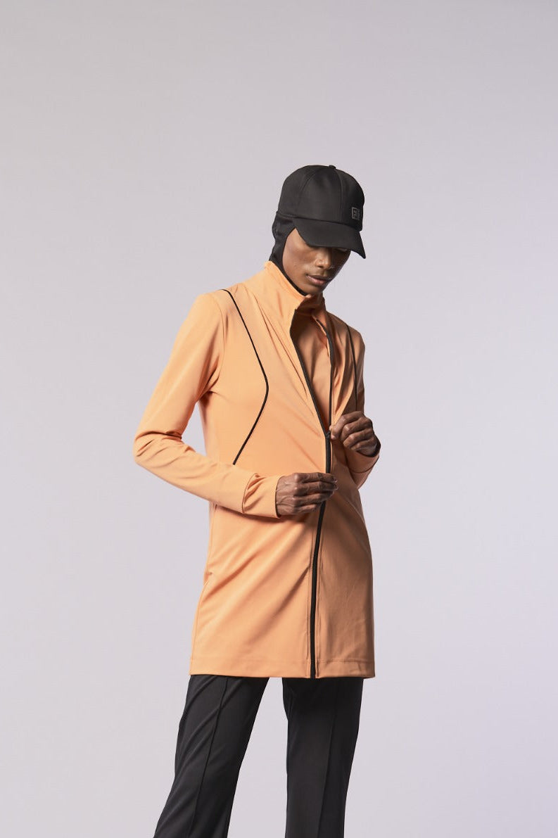 Baseni kapatan uzun kesimi, rahatlık ve tam kapama imkanı sunarak günlük aktivitelerde konforu artırır. Kontrast renkte biyeli detaylar, ürüne şık ve sofistike bir dokunuş ekler. Hem spor hem de günlük kullanıma uygun olan Önden Fermuarlı Dik Yaka Quick Dry tesettür Eşofman Üstü, stil sahibi kadınların dolabında mutlaka yer alması gereken parçalardan biridir. Zarif detayları ve fonksiyonelliği bir araya getiren bu tasarım, rahatlığı ön planda tutanlar için mükemmel bir seçimdir. Bu ürün, tesettür eşofman takımı kombinlerinde rahatlıkla kullanılabilecek parçalar arasında yer almaktadır.