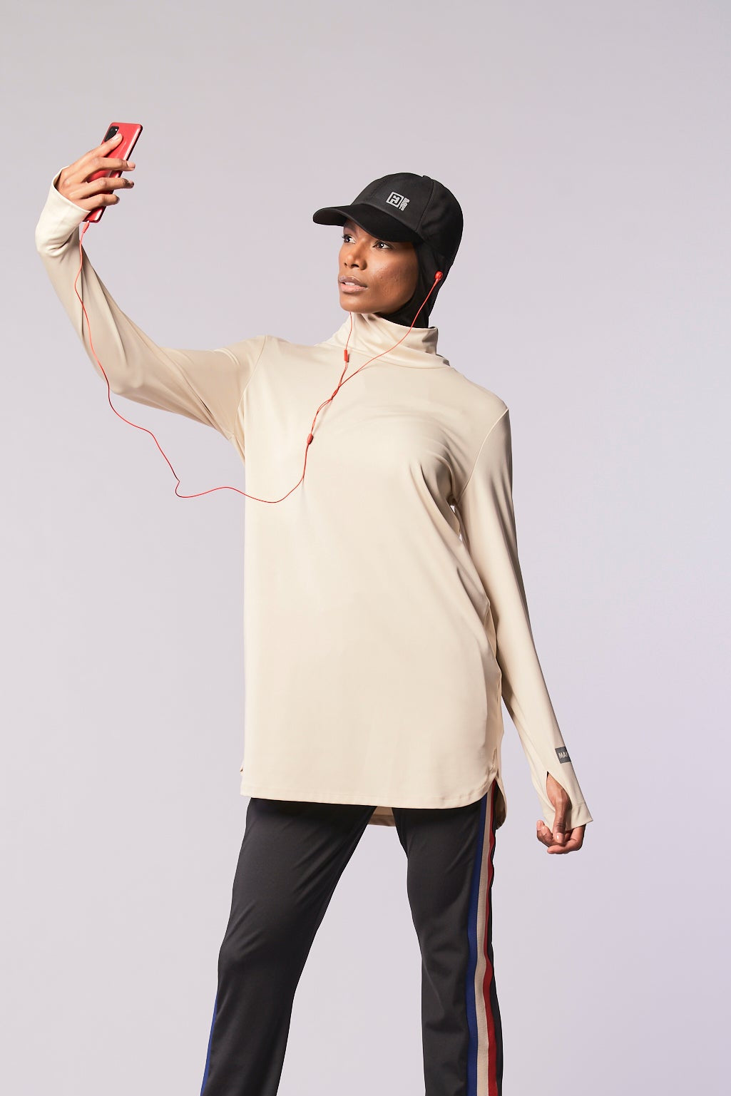 GYM-FIT Balıkçı Yaka Quick Dry Eşofman Üstü - Bej