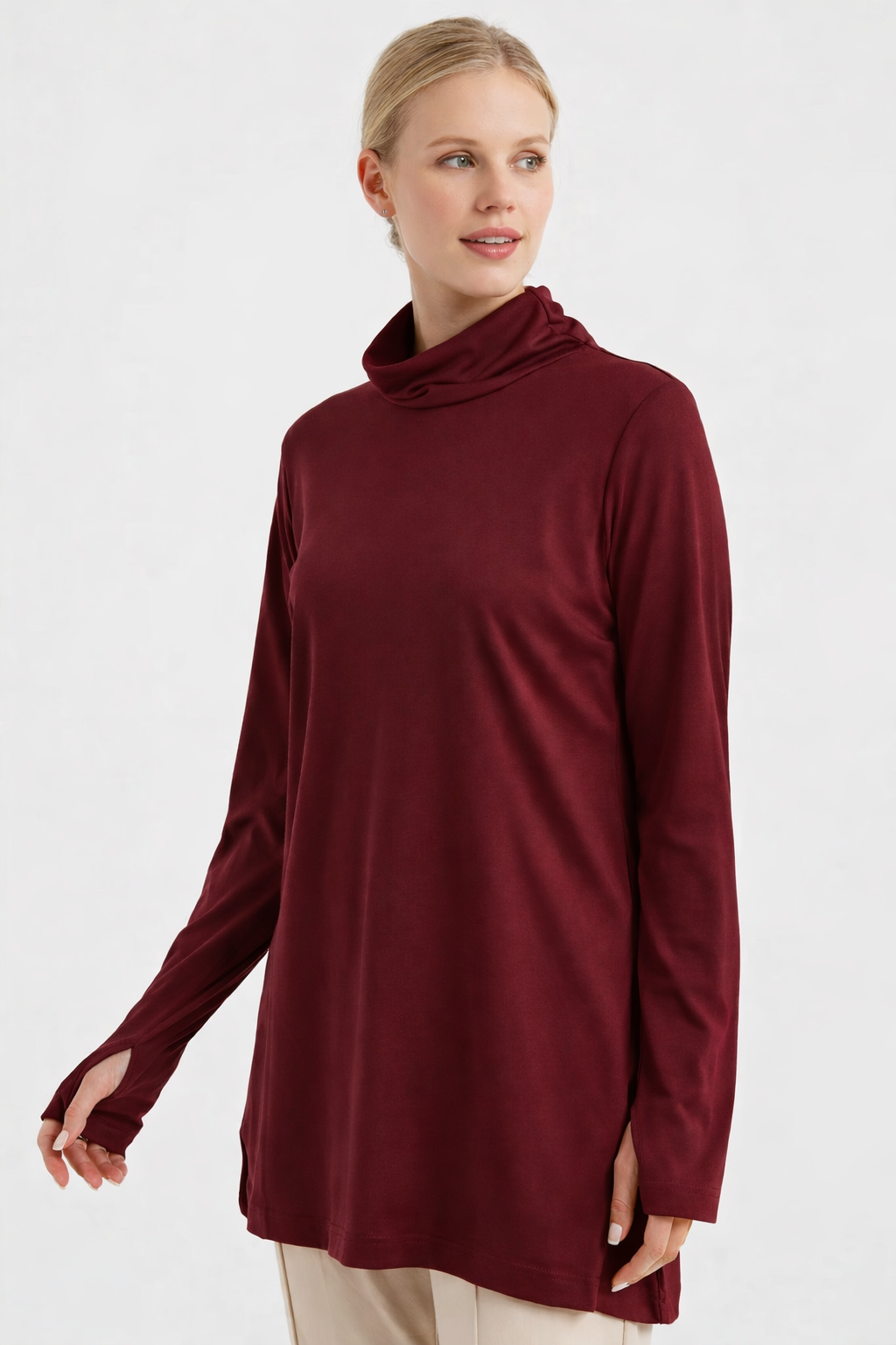 Düz kesimi, her vücut tipine uyum sağlayarak her koşulda rahat bir giyim deneyimi sunar. Arka modelin uzunluğu, özellikle eğilme veya esneme hareketleri sırasında ekstra örtücülük sağlayarak sırt ve bel bölgesinin kapalı kalmasına yardımcı olur, bu sayede rahat bir spor deneyimi sunar. Balıkçı yaka detayı ile boyun bölgesinde ekstra koruma sağlarken ayrıcaboyun hareketlerinizi daha rahat yapmanıza olanak tanır. Aynı zamanda boyun kaslarını destekleyerek spor sırasında daha iyi performans göstermenize yardımcı olur.