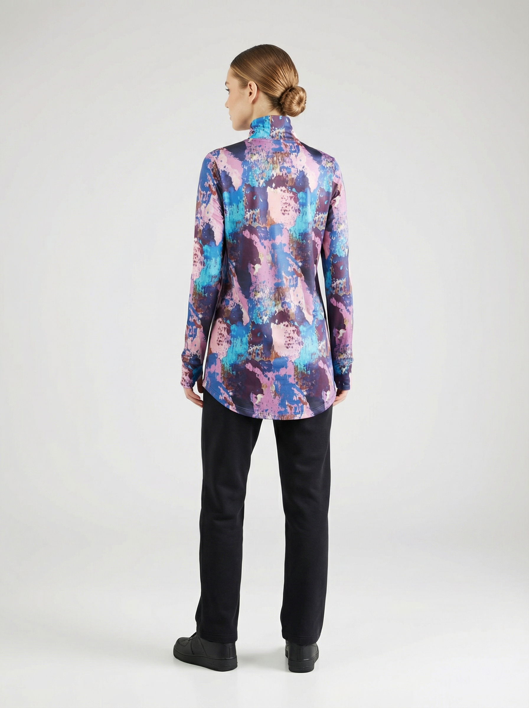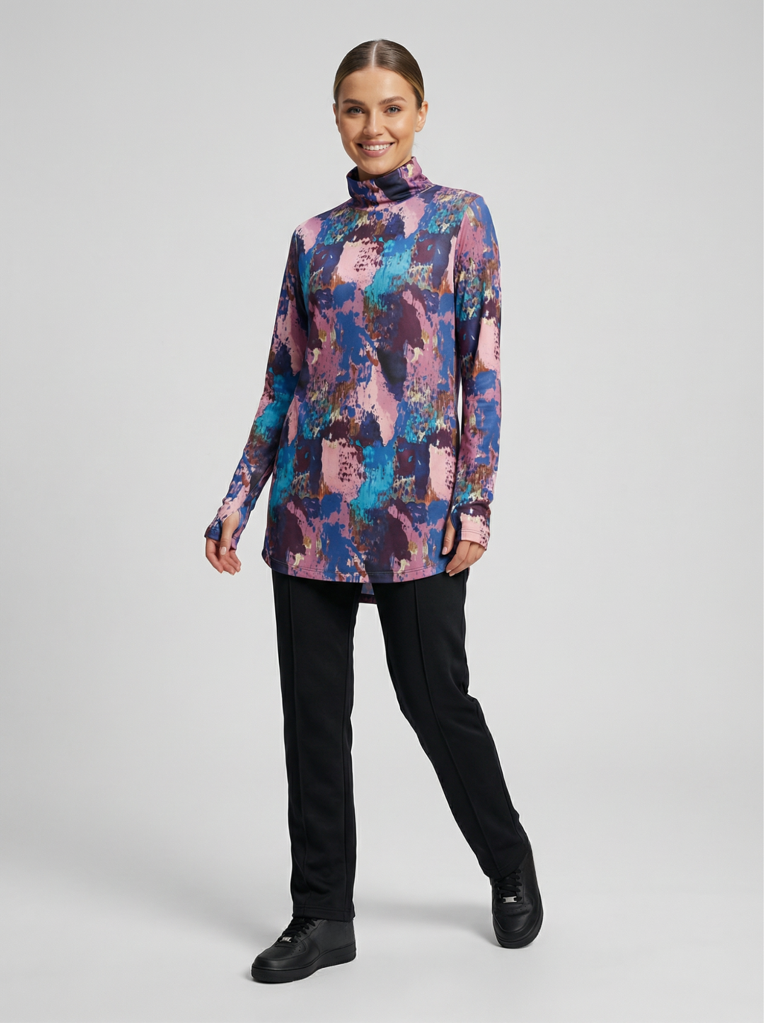 Düz kesimi, her vücut tipine uyum sağlayarak her koşulda rahat bir giyim deneyimi sunar. Arka modelin uzunluğu, özellikle eğilme veya esneme hareketleri sırasında ekstra örtücülük sağlayarak sırt ve bel bölgesinin kapalı kalmasına yardımcı olur, bu sayede rahat bir spor deneyimi sunar. Balıkçı yaka detayı ile boyun bölgesinde ekstra koruma sağlarken ayrıcaboyun hareketlerinizi daha rahat yapmanıza olanak tanır. Aynı zamanda boyun kaslarını destekleyerek spor sırasında daha iyi performans göstermenize yardımcı olur.