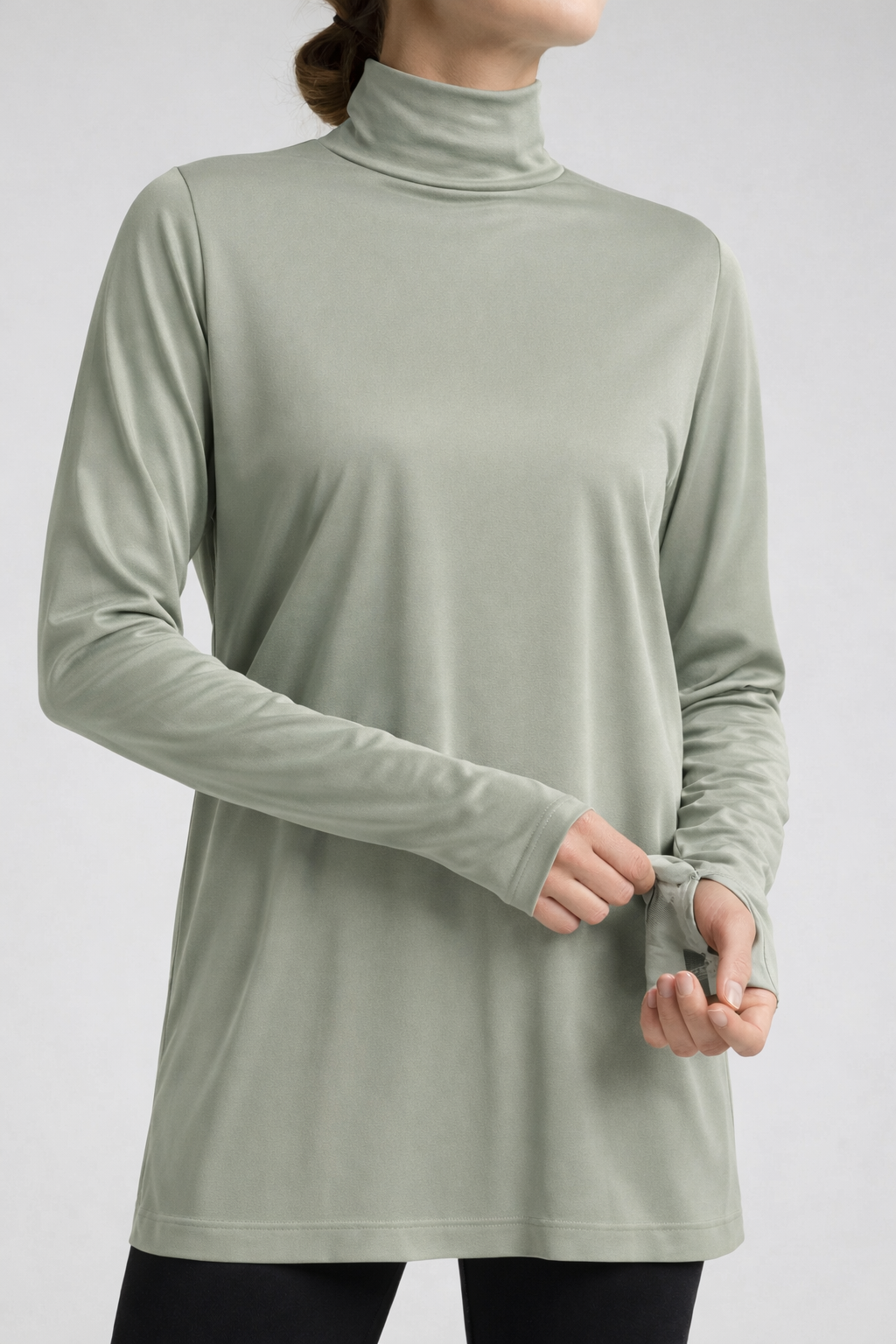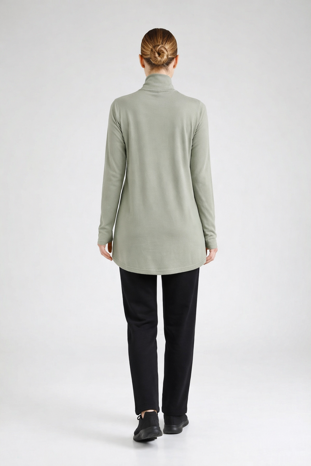 Düz kesimi, her vücut tipine uyum sağlayarak her koşulda rahat bir giyim deneyimi sunar. Arka modelin uzunluğu, özellikle eğilme veya esneme hareketleri sırasında ekstra örtücülük sağlayarak sırt ve bel bölgesinin kapalı kalmasına yardımcı olur, bu sayede rahat bir spor deneyimi sunar. Balıkçı yaka detayı ile boyun bölgesinde ekstra koruma sağlarken ayrıcaboyun hareketlerinizi daha rahat yapmanıza olanak tanır. Aynı zamanda boyun kaslarını destekleyerek spor sırasında daha iyi performans göstermenize yardımcı olur.