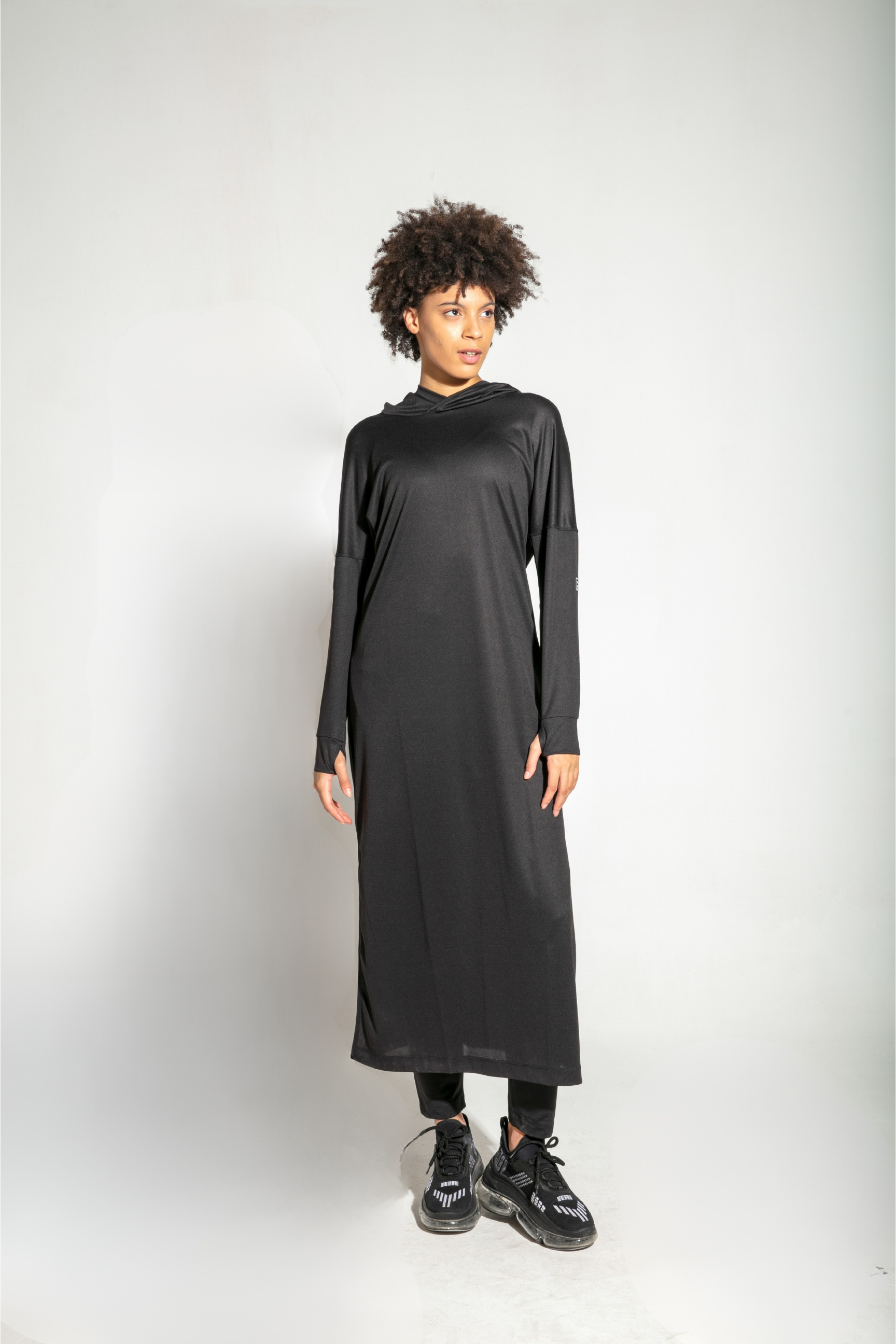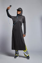 Tam boy kapüşonlu tasarımıyla öne çıkan Kapüşonlu Uzun Quick Dry Eşofman Üstü, tesettür giyim tercih eden kadınlar için özel olarak tasarlanmıştır.