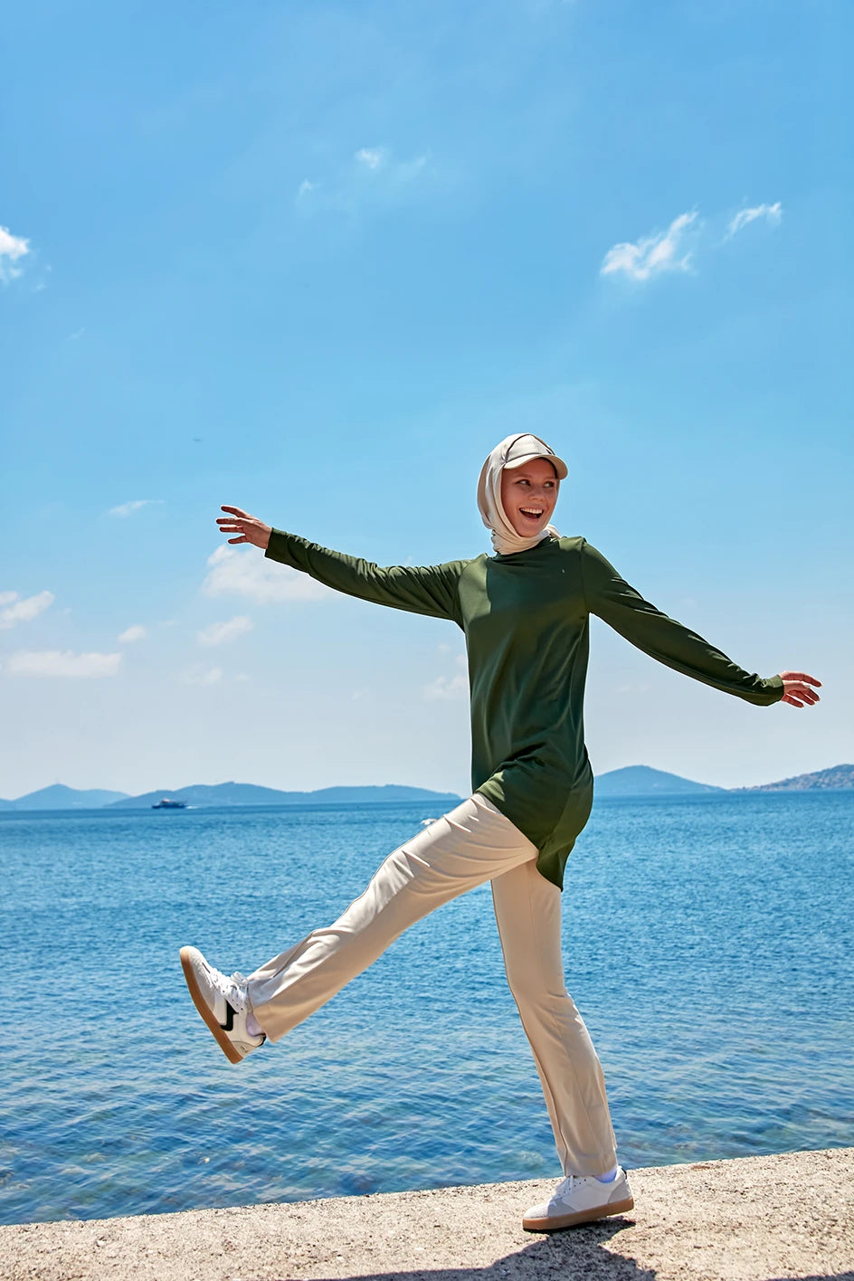 TRAIN-FIT Bisiklet Yaka Quick Dry tesettür Eşofman Üstü, hem spor hem de günlük aktiviteleriniz için ideal bir tercih olarak öne çıkar. Bu ürün, tesettür eşofman takımı kombinlerinde rahatlıkla kullanılabilecek parçalar arasında yer almaktadır.