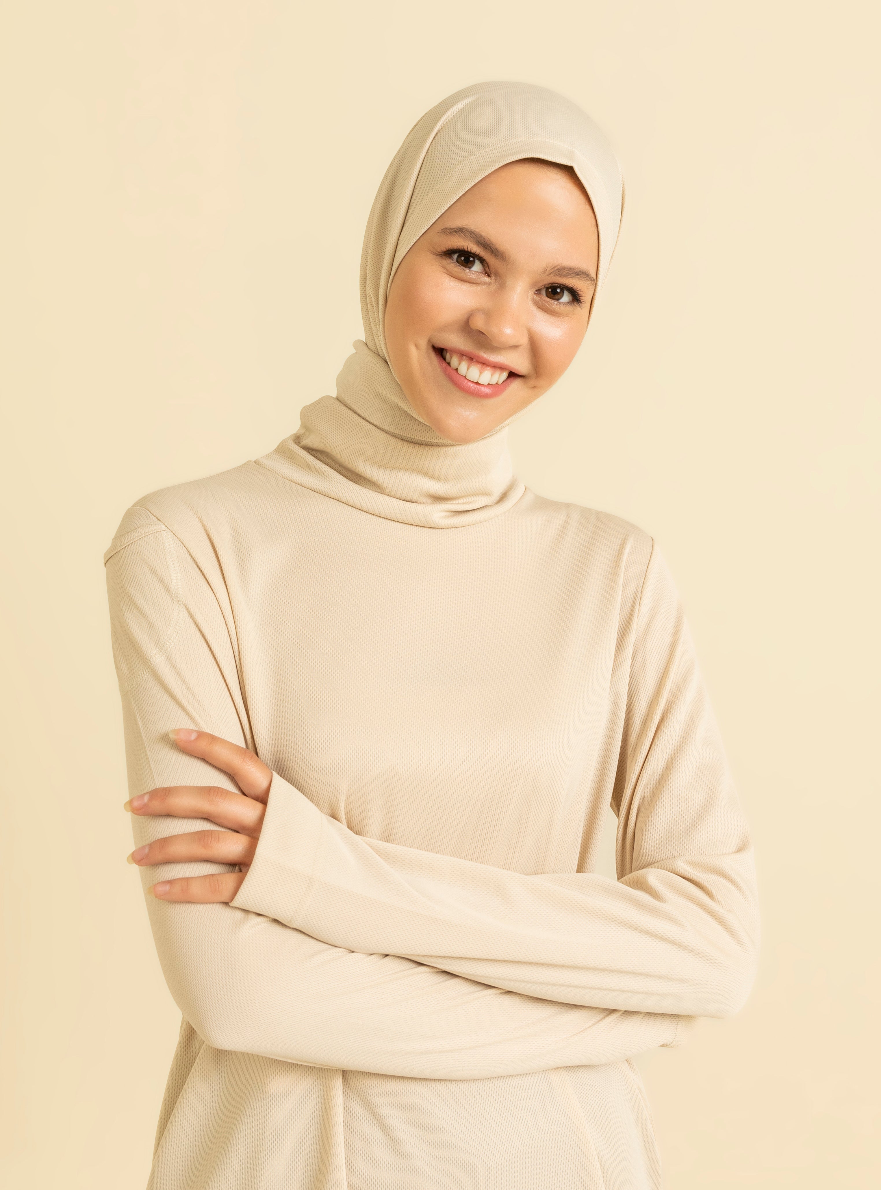 GYM-FIT Balıkçı Yaka Quick Dry Eşofman Üstü - Bej