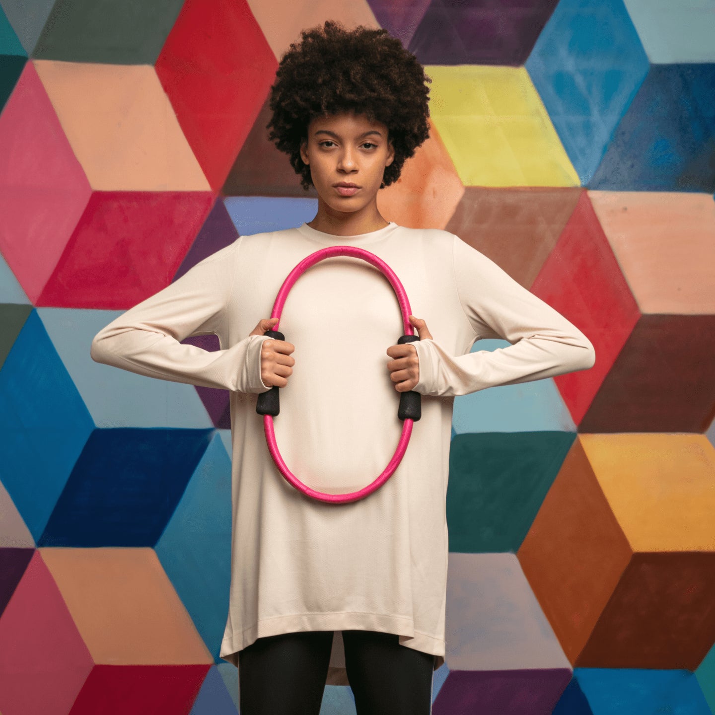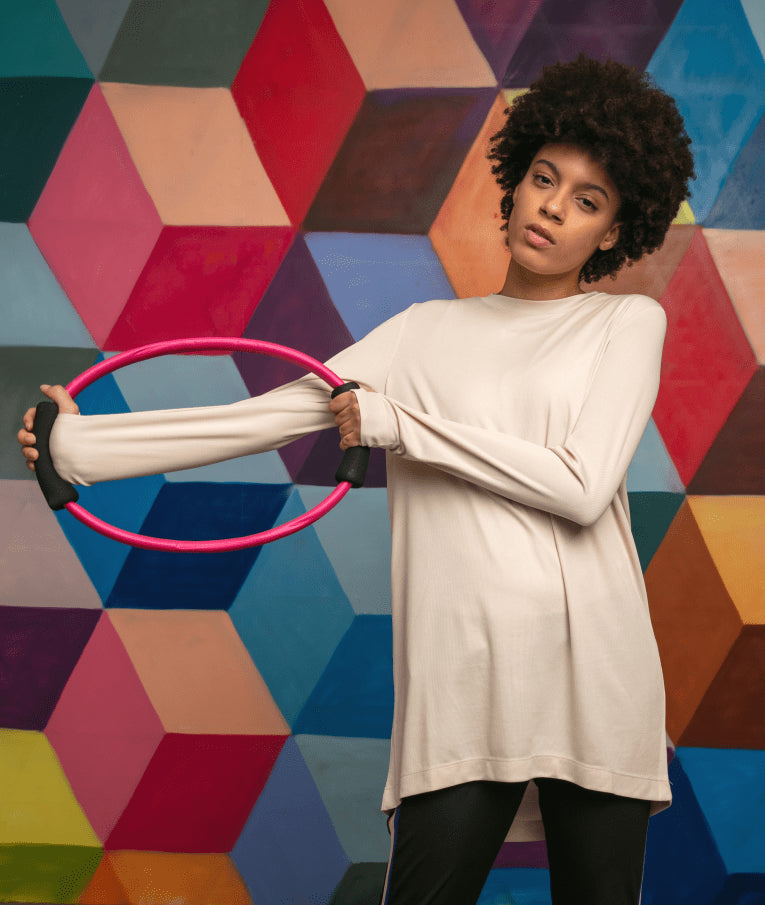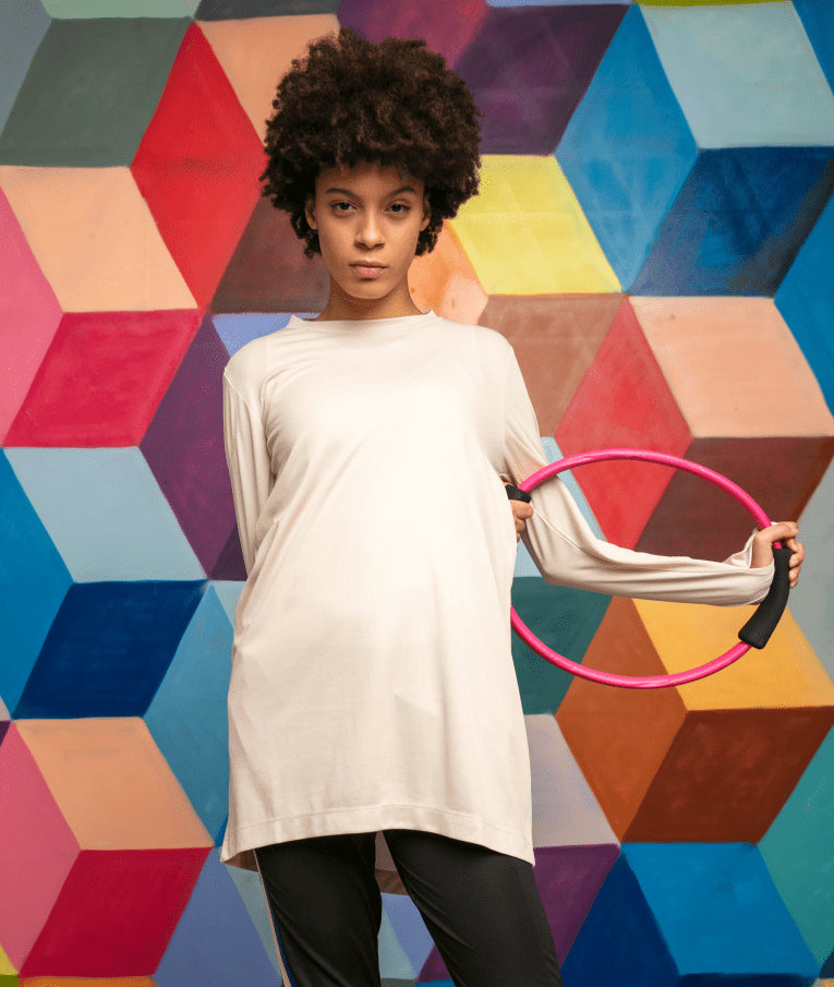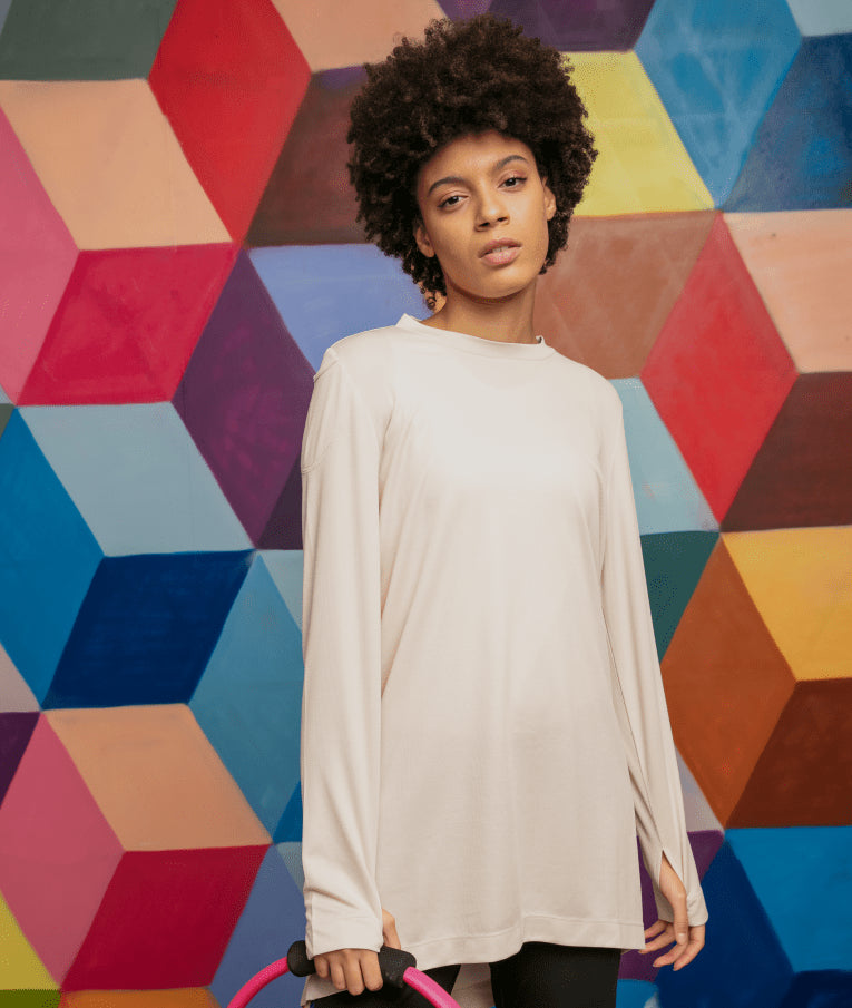 Spor yaparken veya günlük koşuşturmacalarda ihtiyacınız olan rahatlığı ve işlevselliği şık bir tasarımla birleştirir. Kollarındaki pratik parmaklık detayları, antrenman sırasında kollarınızın serbest ve esnek hareket etmesine olanak tanırken, rahatlık ve fonksiyonellik sağlar. Eşofmanın A form kesimi, göğsünüzden etek ucuna kadar vücut hatlarınıza uyum sağlar, bu sayede size özgür hareket etme imkanı sunarak stilinize zarif bir dokunuş katar. Arka modelin uzunluğu, eğilme veya esneme hareketleri sırasında ekstra örtücülük sağlar, sırt ve bel bölgesini her zaman kapalı tutarak konforlu bir spor deneyimi sunar. Ayrıca, arka yakada bulunan çok renkli özel şeritler, modelin gövde rengiyle uyumlu olarak sportif görünümünüzü vurgular. Hızlı kuruyan teknolojisi sayesinde, kumaş teri hızla emerek sizi her zaman kuru ve rahat tutar, böylece yoğun antrenmanlarda bile konforunuzu korur.