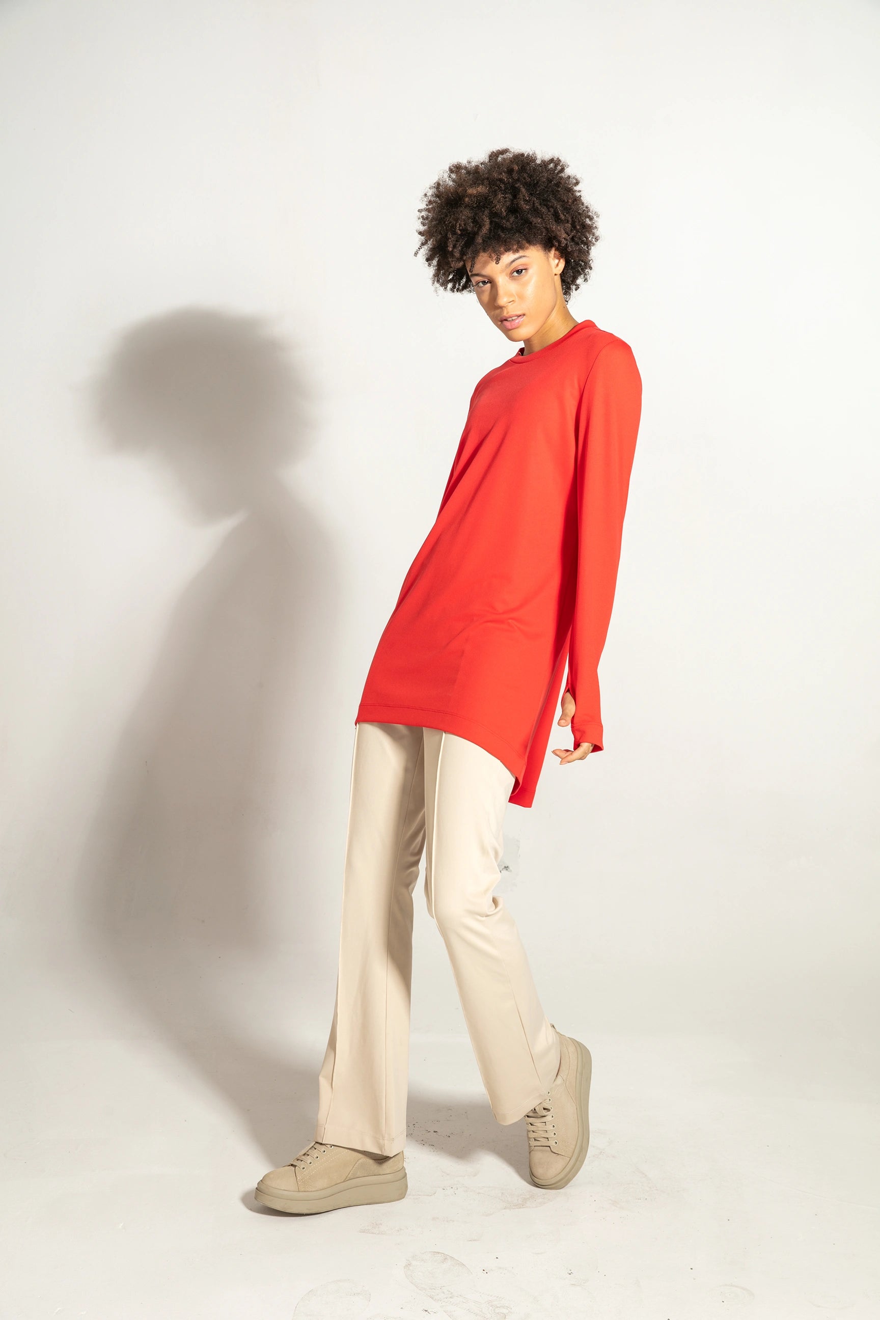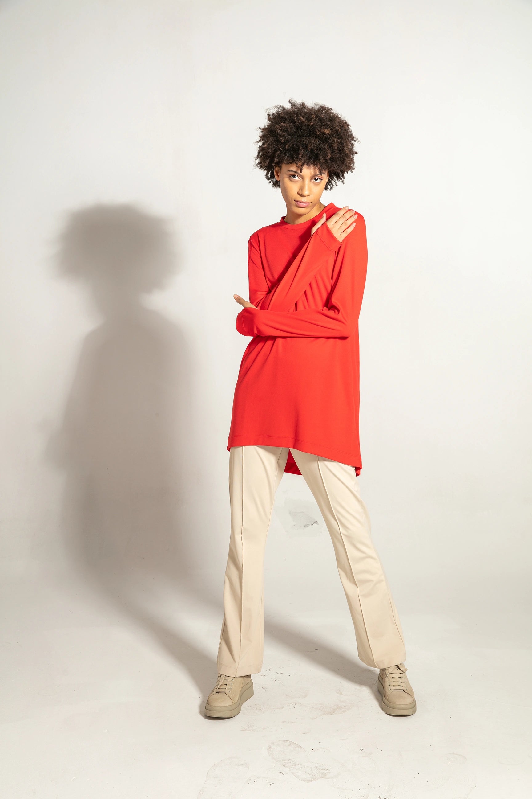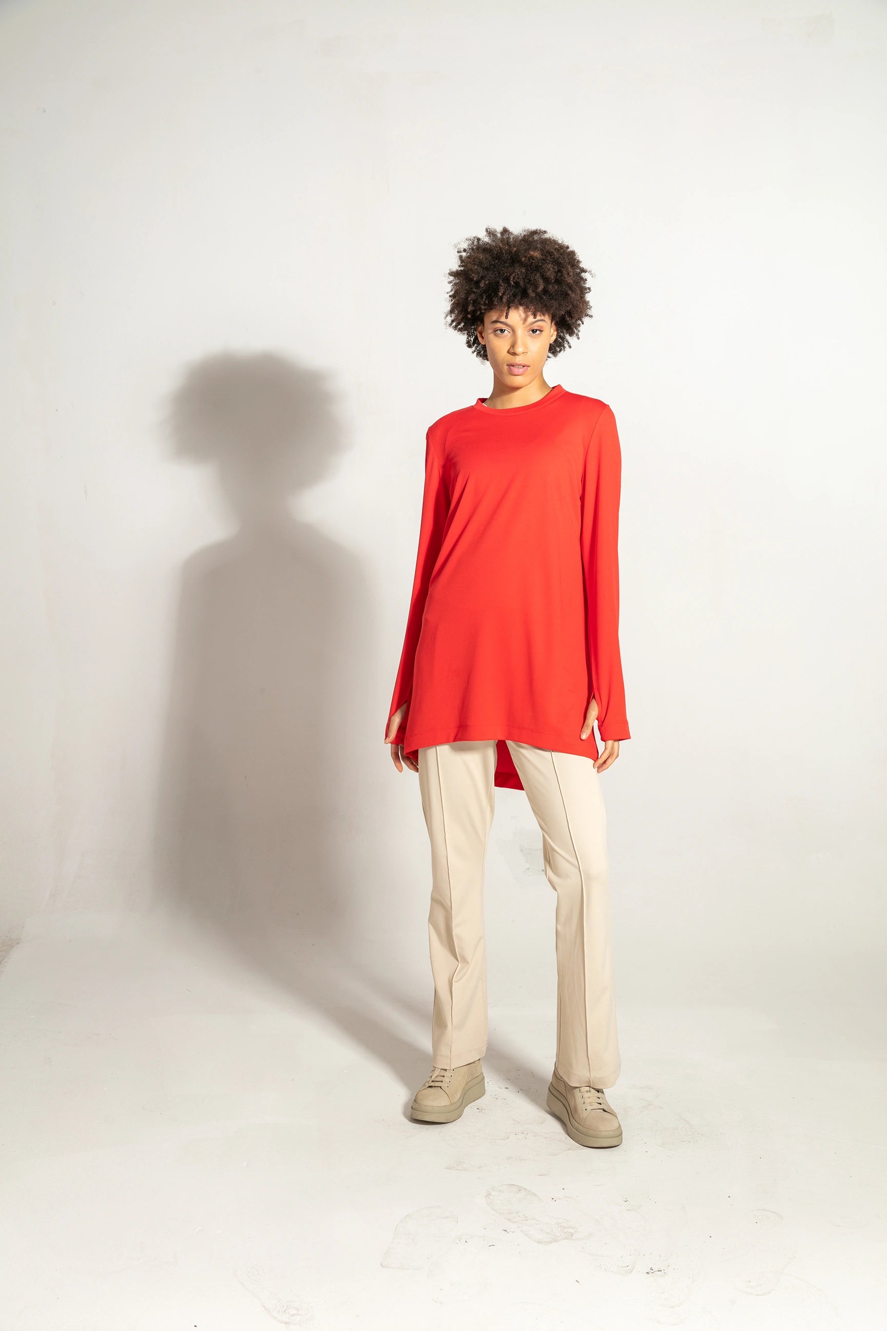 TRAIN-FIT Bisiklet Yaka Quick Dry Eşofman Üstü - Kırmızı