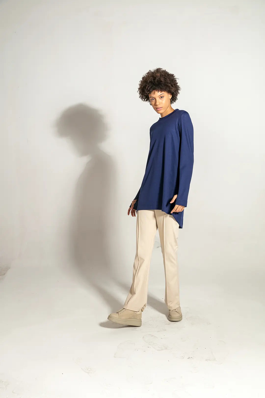 Spor yaparken veya günlük koşuşturmacalarda ihtiyacınız olan rahatlığı ve işlevselliği şık bir tasarımla birleştirir. Kollarındaki pratik parmaklık detayları, antrenman sırasında kollarınızın serbest ve esnek hareket etmesine olanak tanırken, rahatlık ve fonksiyonellik sağlar. Eşofmanın A form kesimi, göğsünüzden etek ucuna kadar vücut hatlarınıza uyum sağlar, bu sayede size özgür hareket etme imkanı sunarak stilinize zarif bir dokunuş katar. Arka modelin uzunluğu, eğilme veya esneme hareketleri sırasında ekstra örtücülük sağlar, sırt ve bel bölgesini her zaman kapalı tutarak konforlu bir spor deneyimi sunar. Ayrıca, arka yakada bulunan çok renkli özel şeritler, modelin gövde rengiyle uyumlu olarak sportif görünümünüzü vurgular. Hızlı kuruyan teknolojisi sayesinde, kumaş teri hızla emerek sizi her zaman kuru ve rahat tutar, böylece yoğun antrenmanlarda bile konforunuzu korur.