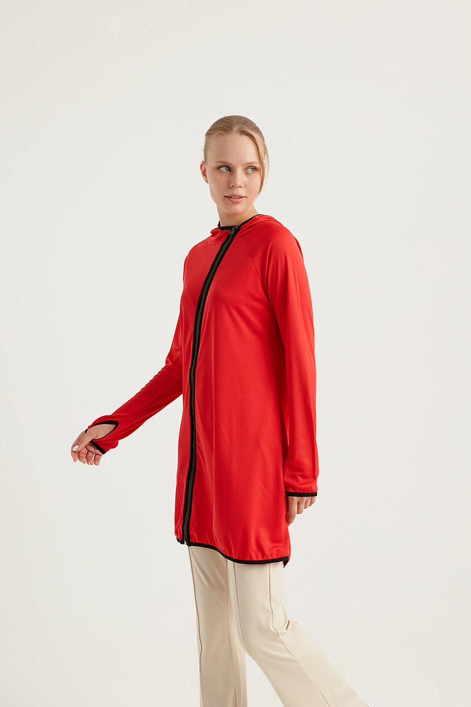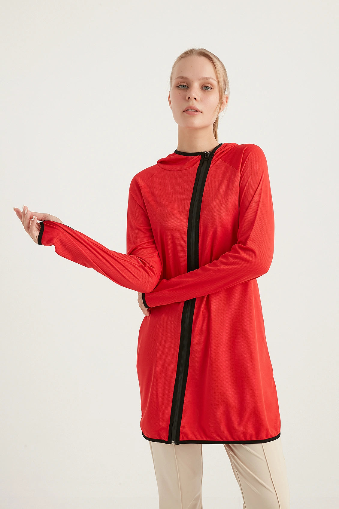 AURA-TECH Çapraz Fermuarlı Quick Dry tesettür Eşofman Üstü, şıklığı ve fonksiyonelliği bir arada sunarak her koşulda sizi destekler. Bu eşofman üstü ile hem antrenmanlarınızda hem de günlük yaşantınızda tarzınızı ve konforunuzu bir üst seviyeye taşıyın. Hızlı kuruyan kumaşı sayesinde, yoğun spor aktivitelerinizde bile kuru ve rahat kalırsınız. Bu ürün, tesettür eşofman takımı kombinlerinde rahatlıkla kullanılabilecek parçalar arasında yer almaktadır.
