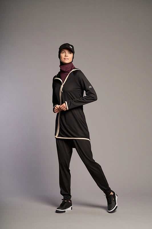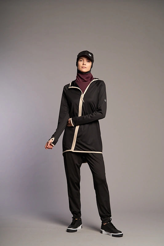 AURA-TECH Çapraz Fermuarlı Quick Dry tesettür Eşofman Üstü, şıklığı ve fonksiyonelliği bir arada sunarak her koşulda sizi destekler. Bu eşofman üstü ile hem antrenmanlarınızda hem de günlük yaşantınızda tarzınızı ve konforunuzu bir üst seviyeye taşıyın. Hızlı kuruyan kumaşı sayesinde, yoğun spor aktivitelerinizde bile kuru ve rahat kalırsınız. Bu ürün, tesettür eşofman takımı kombinlerinde rahatlıkla kullanılabilecek parçalar arasında yer almaktadır.