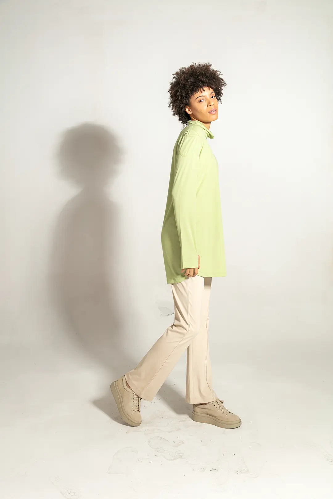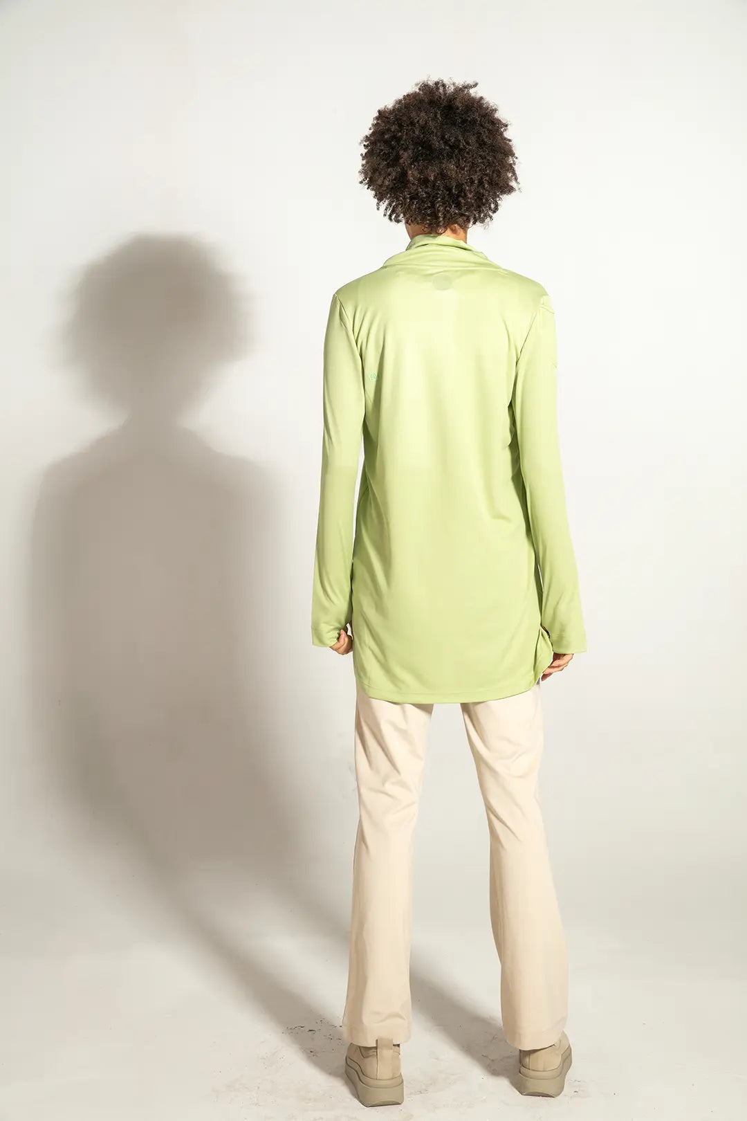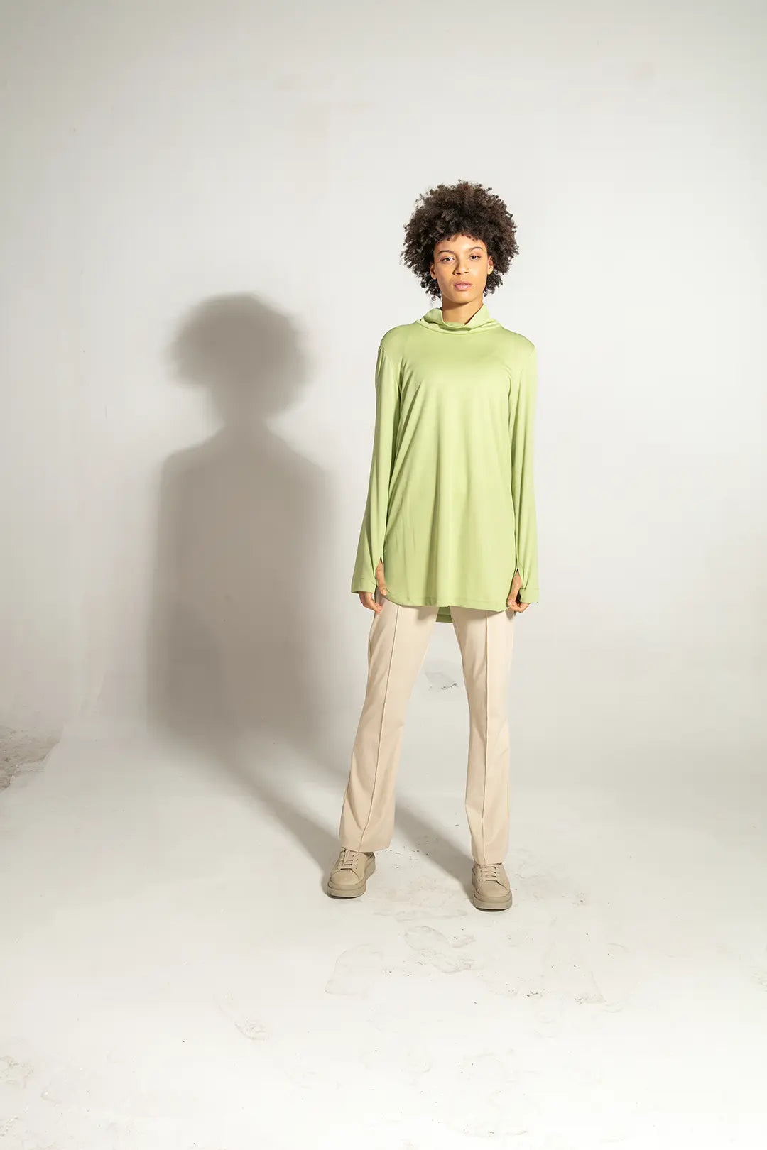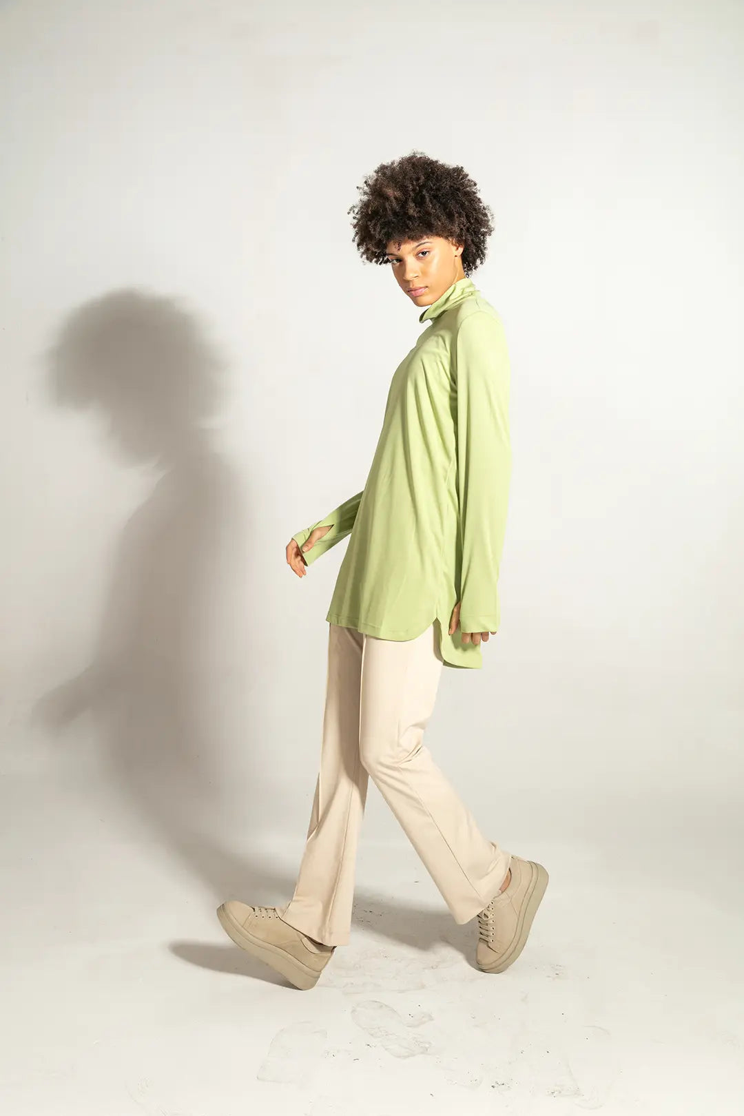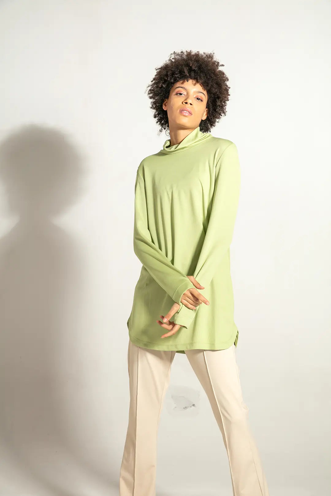 Düz kesimi, her vücut tipine uyum sağlayarak her koşulda rahat bir giyim deneyimi sunar. Arka modelin uzunluğu, özellikle eğilme veya esneme hareketleri sırasında ekstra örtücülük sağlayarak sırt ve bel bölgesinin kapalı kalmasına yardımcı olur, bu sayede rahat bir spor deneyimi sunar. Balıkçı yaka detayı ile boyun bölgesinde ekstra koruma sağlarken ayrıcaboyun hareketlerinizi daha rahat yapmanıza olanak tanır. Aynı zamanda boyun kaslarını destekleyerek spor sırasında daha iyi performans göstermenize yardımcı olur.