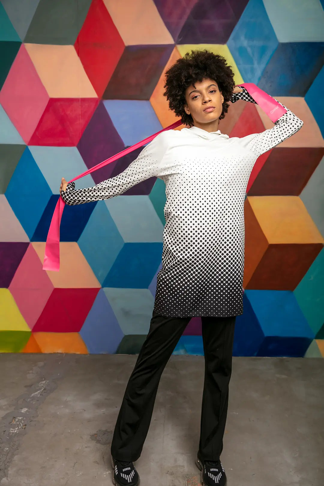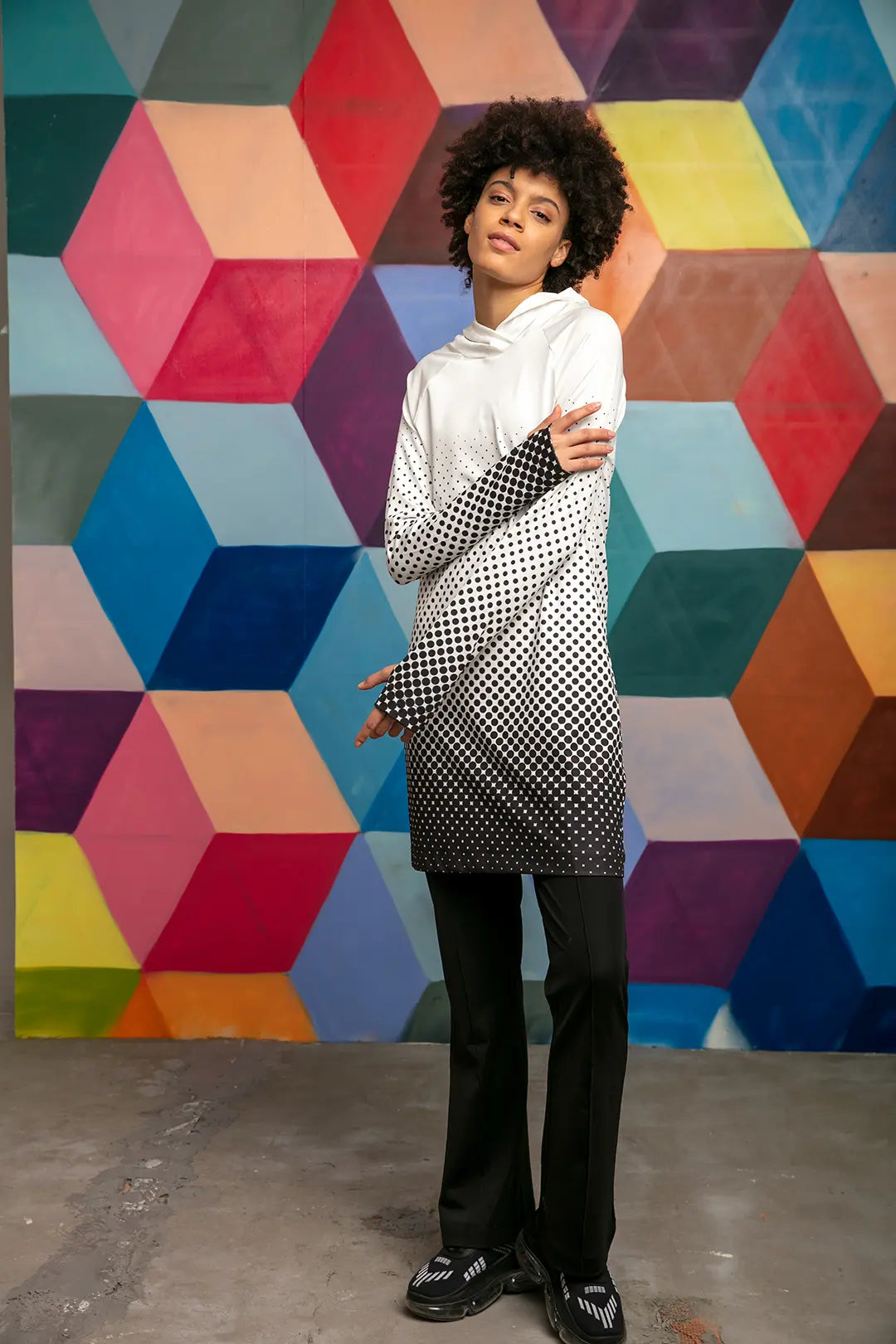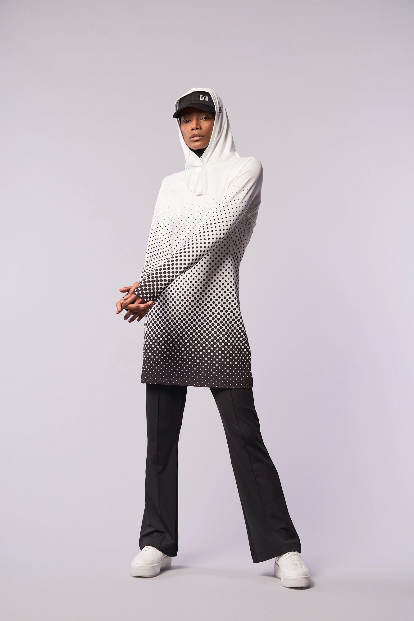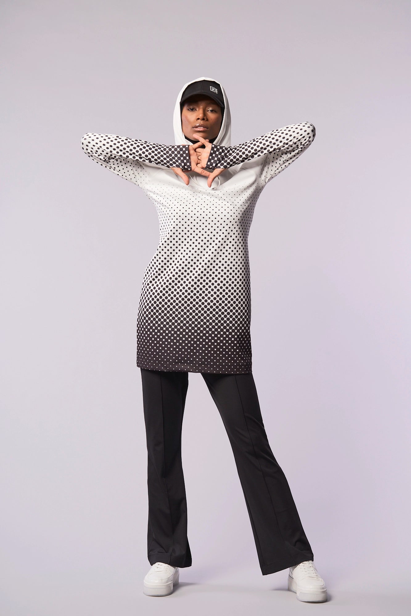 Nokta Baskılı Kapüşonlu Sweat Shirt - Siyah