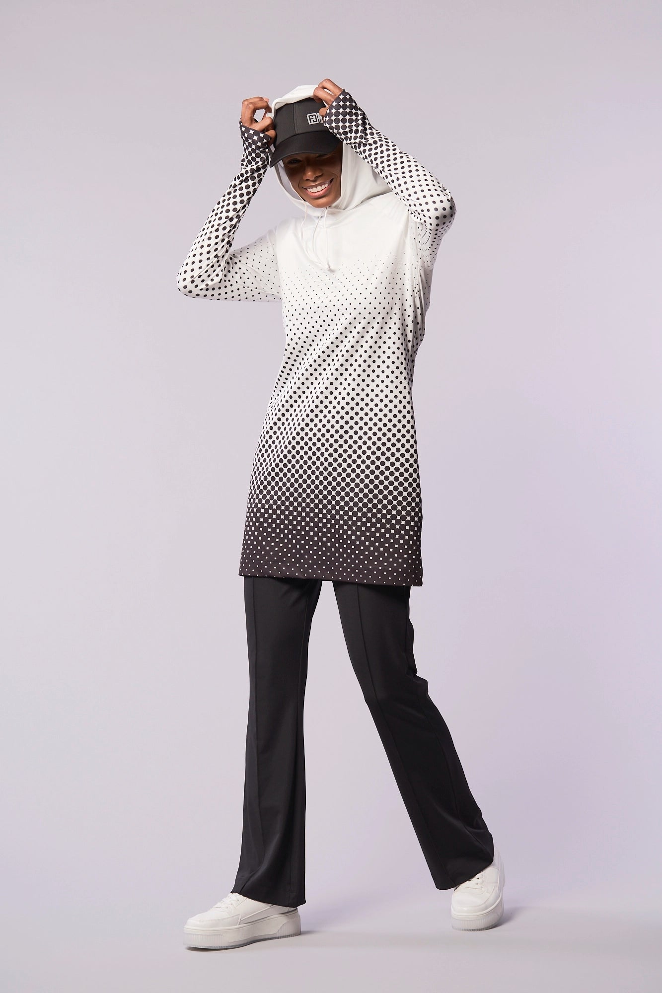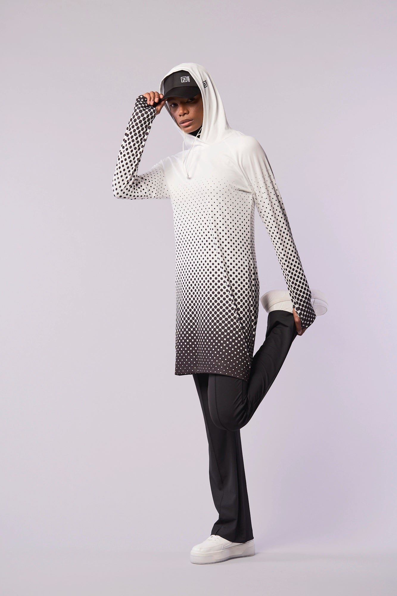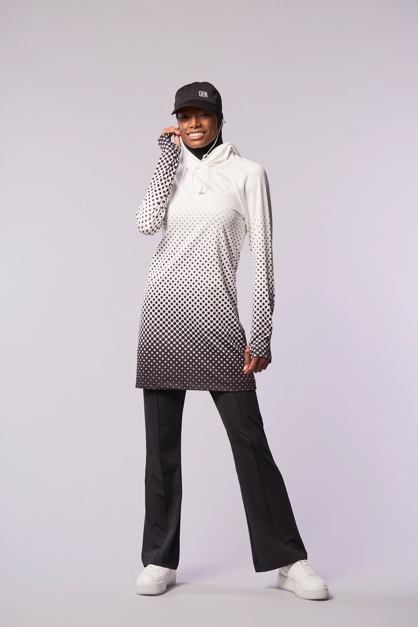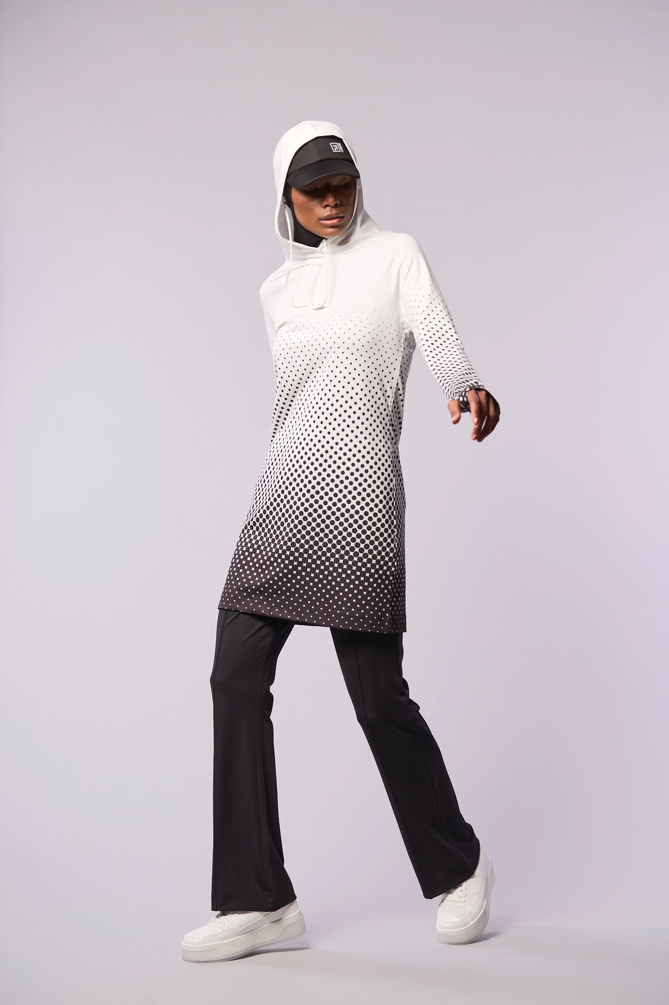 Tam boy kapüşonlu tasarımıyla öne çıkan Kapüşonlu Uzun Quick Dry Eşofman Üstü, tesettür giyim tercih eden kadınlar için özel olarak tasarlanmıştır.