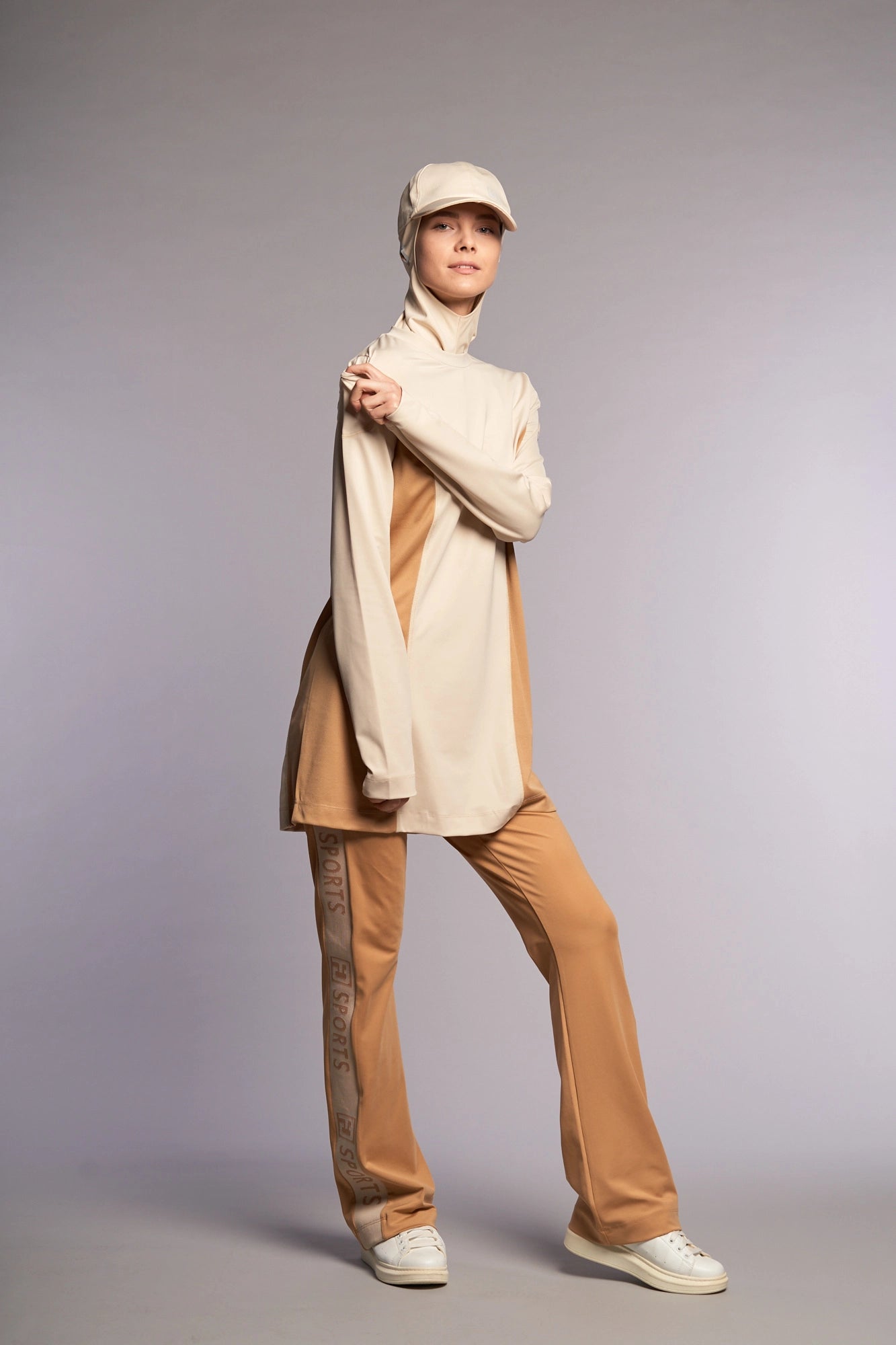Panelli yapısı, eşofman üstüne dinamik bir hava katarken, iki renkli tasarımı da göz alıcı bir kontrast sağlar. Kullanıcıya hareket özgürlüğü sunan tasarım, fonksiyonel ve estetik tasarımıyla dolabınızın vazgeçilmez bir parçası olacak.
