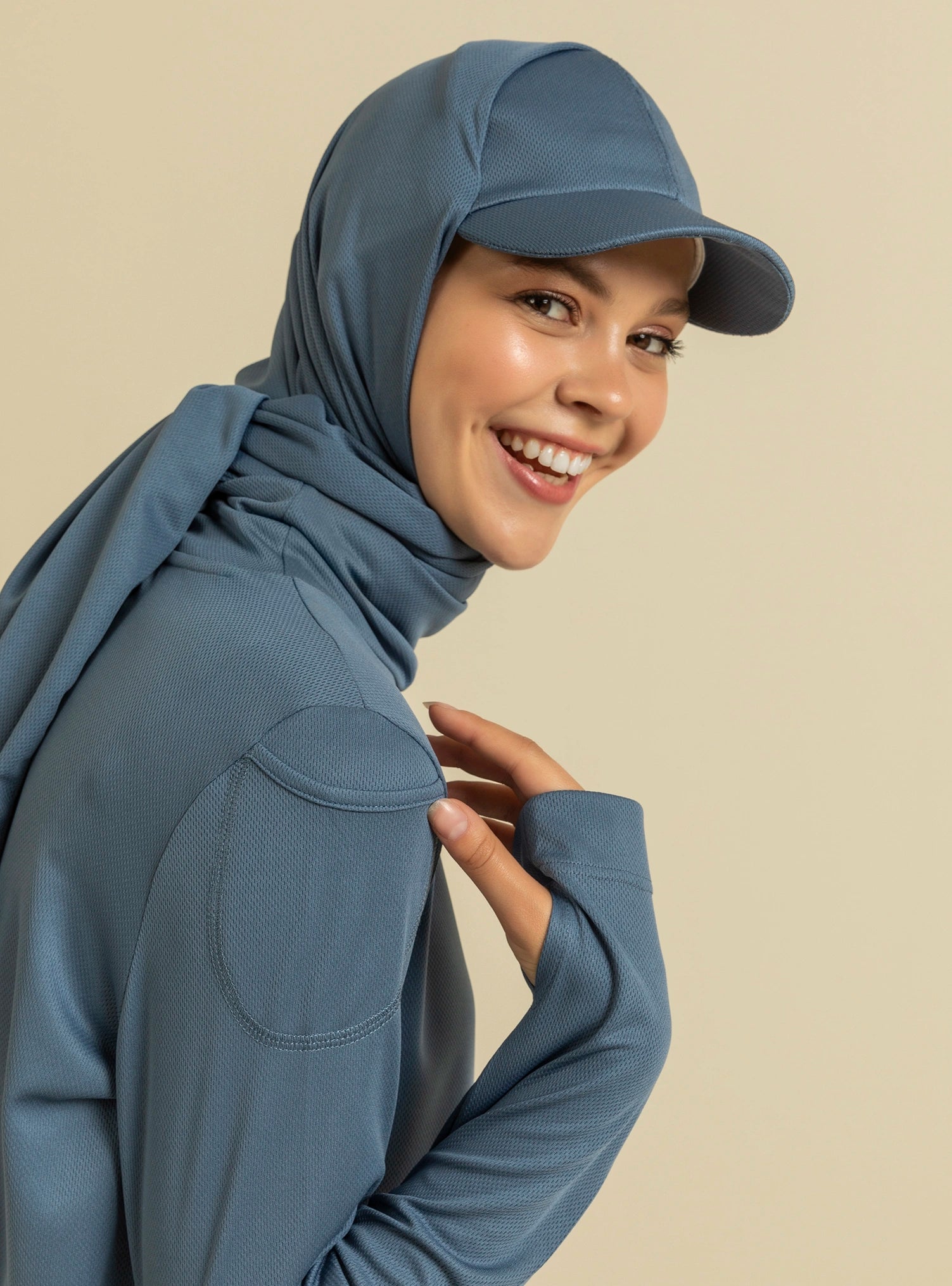 STYLE-HIJAB Kepli Spor Şal - Mavi