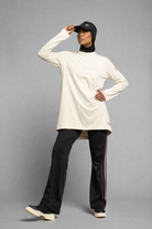 Spor yaparken veya günlük koşuşturmacalarda ihtiyacınız olan rahatlığı ve işlevselliği şık bir tasarımla birleştirir. Kollarındaki pratik parmaklık detayları, antrenman sırasında kollarınızın serbest ve esnek hareket etmesine olanak tanırken, rahatlık ve fonksiyonellik sağlar. Eşofmanın A form kesimi, göğsünüzden etek ucuna kadar vücut hatlarınıza uyum sağlar, bu sayede size özgür hareket etme imkanı sunarak stilinize zarif bir dokunuş katar. Arka modelin uzunluğu, eğilme veya esneme hareketleri sırasında ekstra örtücülük sağlar, sırt ve bel bölgesini her zaman kapalı tutarak konforlu bir spor deneyimi sunar. Ayrıca, arka yakada bulunan çok renkli özel şeritler, modelin gövde rengiyle uyumlu olarak sportif görünümünüzü vurgular. Hızlı kuruyan teknolojisi sayesinde, kumaş teri hızla emerek sizi her zaman kuru ve rahat tutar, böylece yoğun antrenmanlarda bile konforunuzu korur.